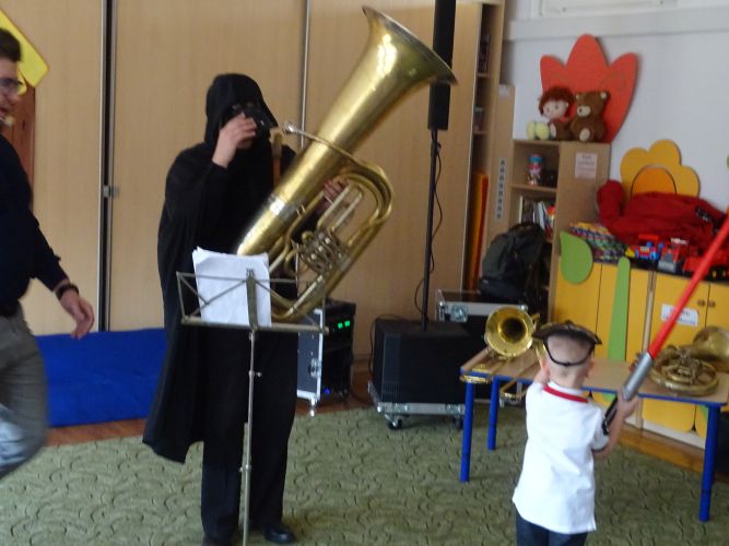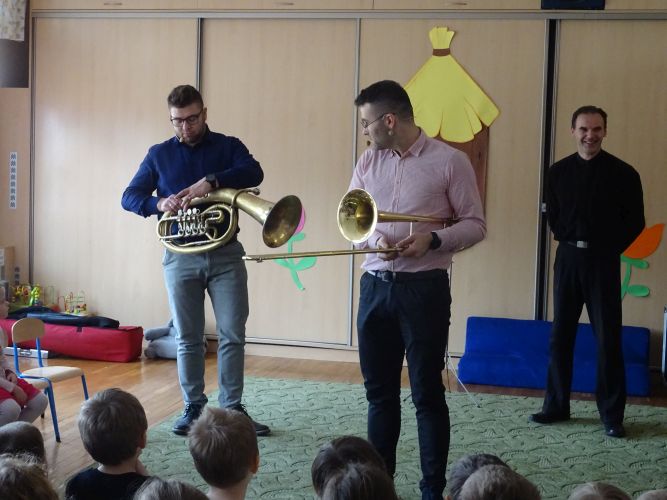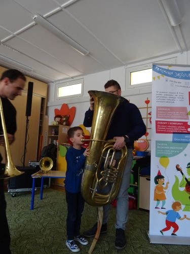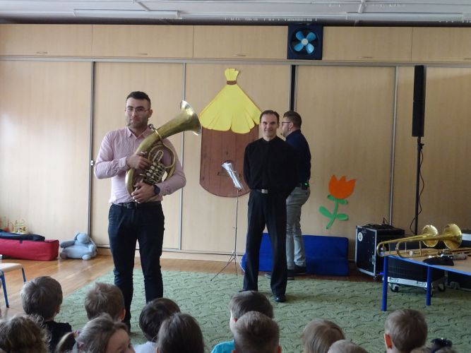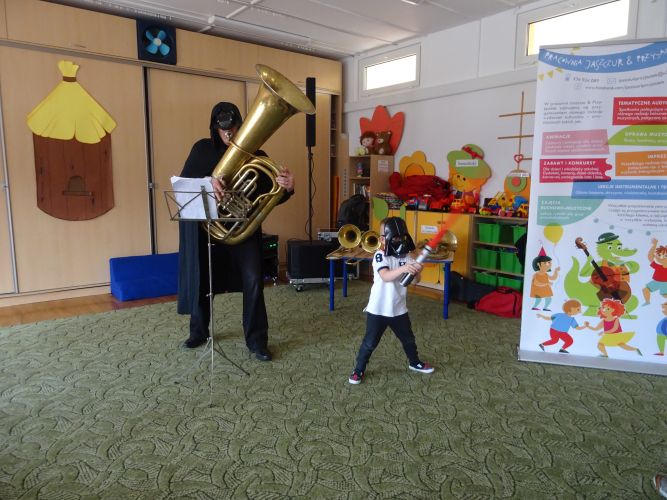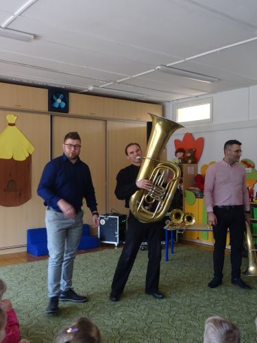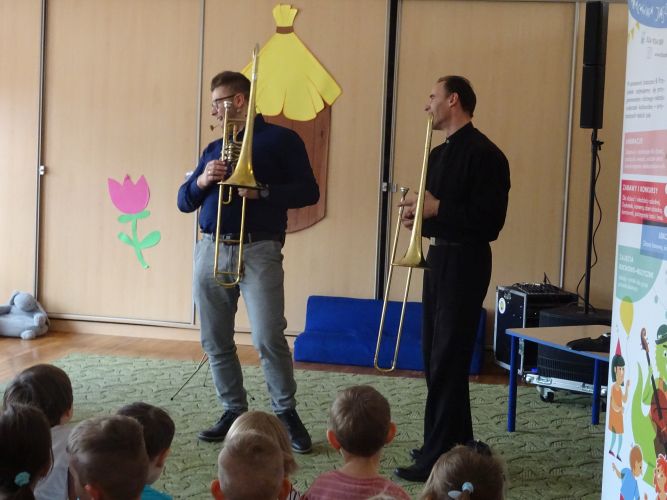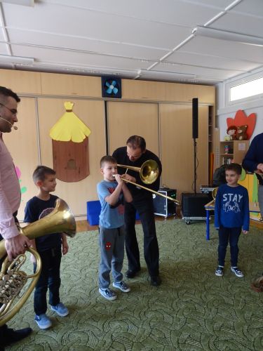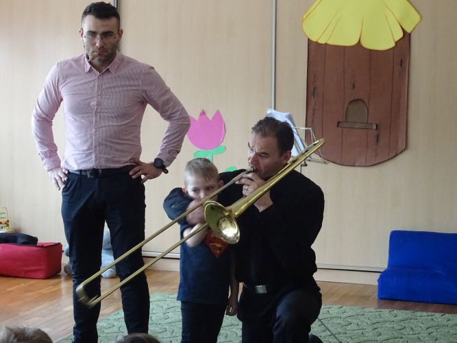 25.02.2019r. już po raz kolejny w naszym przedszkolu odbyła się audycja muzyczna w wykonaniu grupy "Jaszczur i Przyjaciele". Tym razem tematem audycji były instrumenty dęte. Wykonawcy przedstawili dzieciom różne instrumenty, a dzieci mogły aktywnie uczestniczyć w audycji próbując swoich sił w grze na takich instrumentach jak puzon. Ponadto, dzieci odgadywały muzyczne zagadki oraz śpiewały piosenki. Wszyscy świetnie się bawili w radosnej atmosferze. Z niecierpliwością czekamy na kolejne spotkanie!