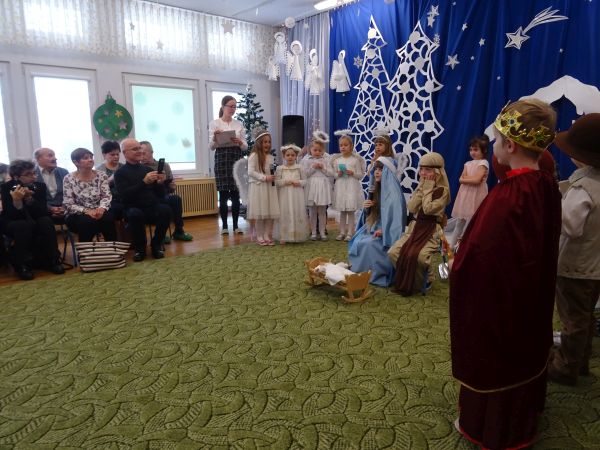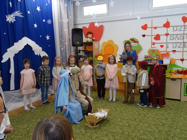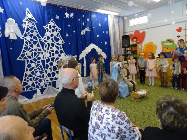 25.01.2019r. w mocno okrojonym składzie swoich gości wyczekiwały przedszkolaki z grupy "Biedronki". Gdy oczekiwani goście zaczęli się pojawiać w przedszkolu radości nie było końca. Przedszkolaki zaprezentowały swoim Babciom i Dziadziom przedstawienie jasełkowe, a następnie wyrecytowały wierszyk pełen życzeń oraz zaśpiewały piosenki dla ukochanych Babć i Dziadziów. Babcie i Dziadziowie ukradkiem ocierali łzy wzruszenia. Dziadkowie nagrodzili występ swoich wnuków gromkimi brawami. Następnie "Biedronki" wręczyły Babciom i Dziadziom samodzielnie przygotowane i podpisane kolorowe serduszka. Składamy wraz z przedszkolakami wszystkim Babciom i Dziadziom najserdeczniejsze życzenia, a Rodzicom przedszkolaków z grupy "Biedronki" dziękujemy za pomoc w przygotowaniu uroczystości.
