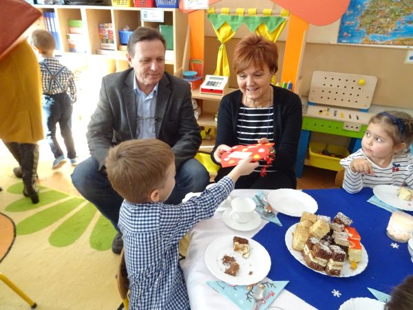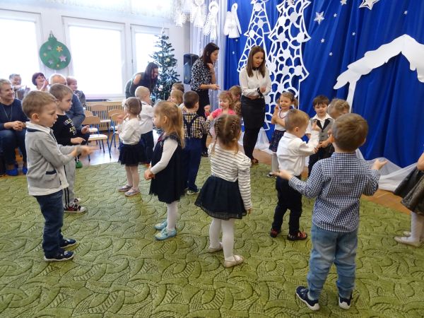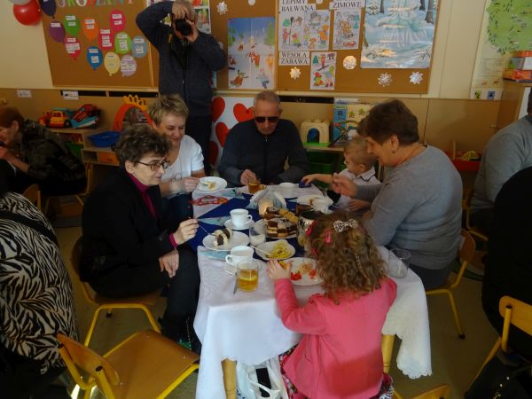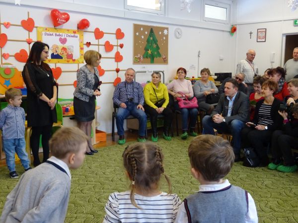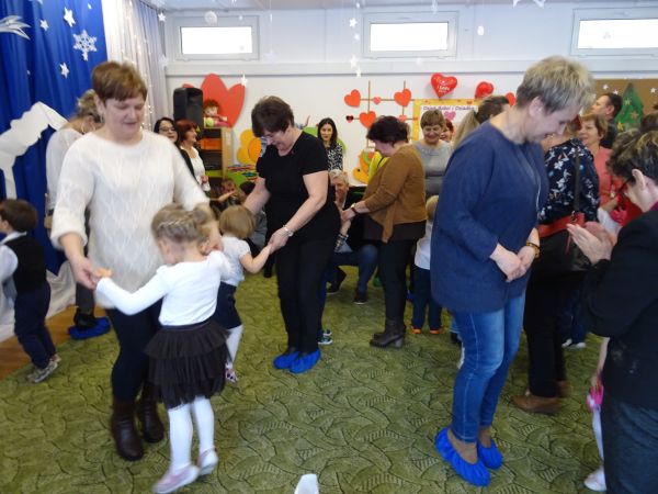 22.01.2019 r. przedszkolaki z grupy "Krasnale" powitały w przedszkolu wyjątkowych gości - Babcie i Dziadziów. Bardzo przejęte maluchy recytowały wierszyk, prezentowały umiejętności taneczne w utworach "Nie chcę cię znać", "Poszło dziewczę", "Make a Circle", grały na instrumentach do piosenki w języku angielskim "Angels", zaprosiły także swoje Babcie i Dziadziów do wspólnego tańca przy utworze "Babciu, droga babciu". Na koniec głośno odśpiewały zaproszonym gościom "Sto lat!". Dołączamy się do życzeń maluszków, wszystkim Babciom i Dziadziom życzymy dużo zdrowia i radości, Rodzicom zaś dziękujemy za pomoc w organizacji uroczystości.