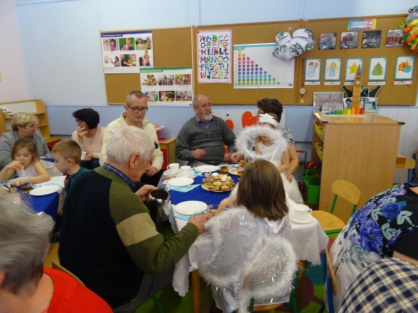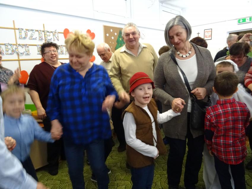 Zimno, mroźno, ale w serduszkach przedszkolaków gorąco, a powodem takiej atmosfery jest obchodzony w przedszkolu Dzień Babci i Dziadzia. Mimo niskiej temperatury jest to jednak najcieplejszy dzień w roku, który sprawia wszystkim ogromną radość i wywołuje uśmiechy na twarzach wszystkich. Tak też było 21.01.2019r. w grupie "Plastusie", do której licznie w ten dzień przybyli najukochańsi Babcie i Dziadkowie. Przedszkolaki przedstawiły swój program artystyczny, w którym zaprezentowały swoje umiejętności muzyczne, ruchowe oraz recytatorskie. Dumni Dziadkowie i Babcie ze wzruszeniem podziwiali występy swoich milusińskich, a przedszkolaki odważnie i bez tremy reprezentowały swoje umiejętności. Dzieci dla swoich Dziadków przygotowały złote rybki spełniające marzenia. Uroczystość zakończono wspólną gościną przy stołach zastawionych domowym ciastem przygotowanym przez Rodziców. Był to dzień niezwykły, nie tylko dla dzieci, ale także dla zaproszonych gości, dzień pełen wzruszeń, uśmiechów, radości.