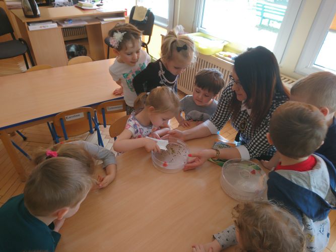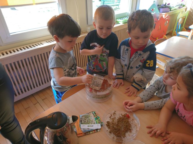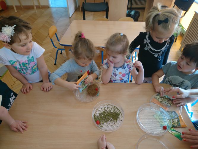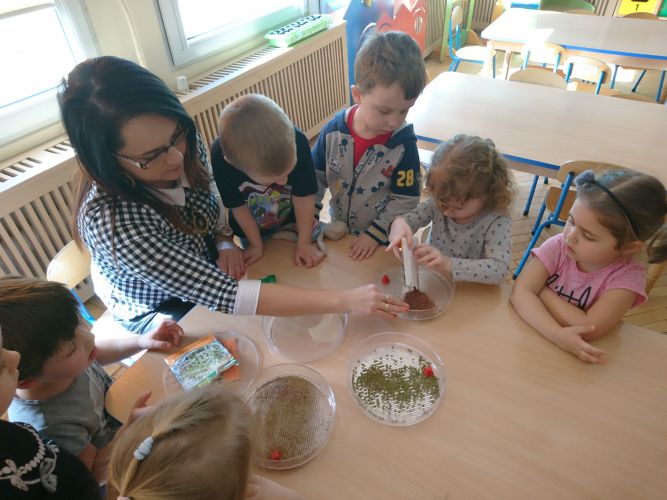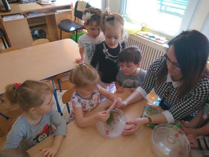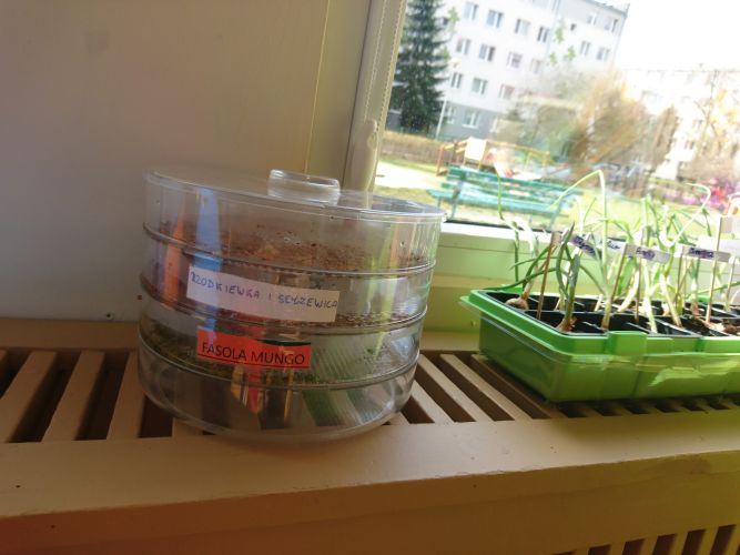 Gotowe kiełki są dziś ogólnie dostępne w sklepach, jednak najwięcej wartościowych dla zdrowia substancji znajduje się tych świeżo wyhodowanych. Poświęcając zaledwie kilka minut dziennie, możemy zapewnić sobie dostęp do pełnej witamin, ekologicznej żywności niezależnie od pory roku. Hodowlę kiełków mieszanych, rzodkiewki i fasoli mung w przeznaczonej do tego kiełkownicy rozpoczęły dziś dzieci z grupy „Krasnale”. Przez najbliższe dni będą pielęgnować i obserwować rosnące kiełki. Gdy już urosną trafią na talerze dzieci.