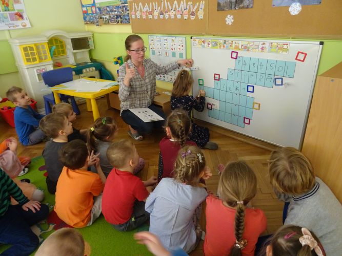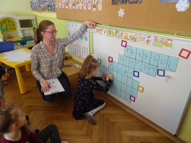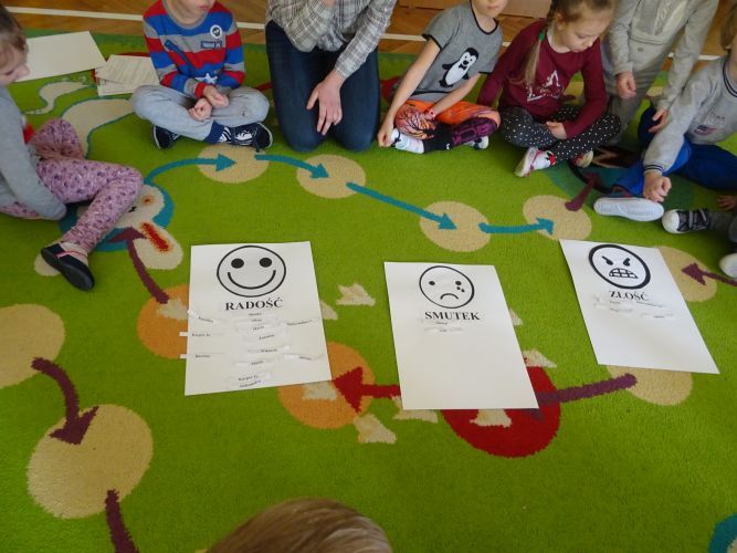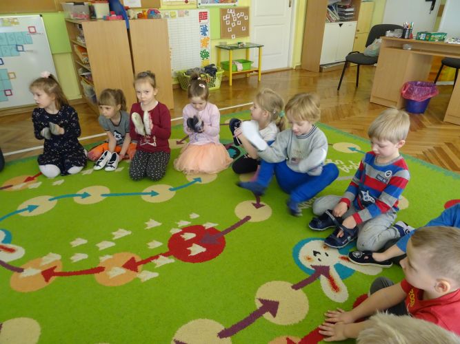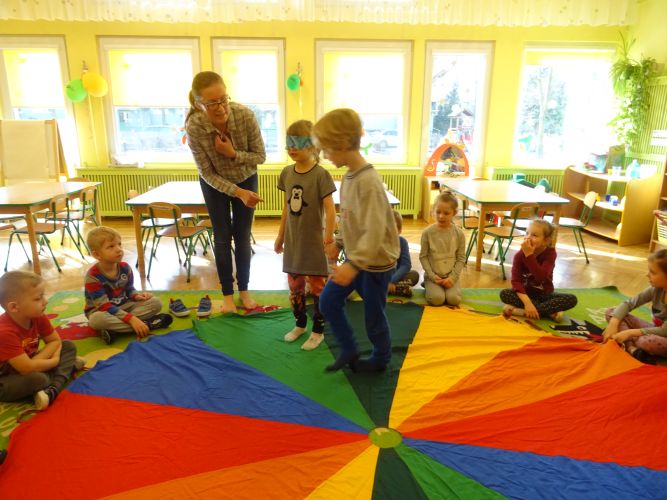 W naszej codziennej pracy kładziemy również duży nacisk na rozwijanie sfery emocjonalnej i społecznyej dzieci. W grupie "Biedronki" odbyły się zajęcia pt. "Instrukcja obsługi złości". Ich celem było zapobieganie objawom agresji i przemocy, uświadomienie dzieciom, że zdrowie psychiczne jest równie ważne jak zdrowie fizyczne. Ponadto podczas zajęć przedszkolaki doskonaliły umiejętności czytania, pisania i liczenia - bawiły się do utworu "Letkiss" Roberta Delgado, wykonały na kartach pracy ćwiczenia usprawniające czytanie sylabami i globalnie, a także zabawiły się w "Liczenie kroków" - zabawa z wykorzystaniem chusty animacyjnej.