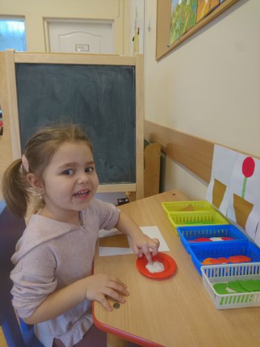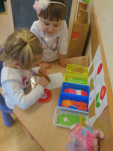 W grupie "Krasnale" został zorganizowany kącik plastyczny, w którym dzieci będą mogły samodzielnie w wybranym przez siebie czasie wykonać zadanie wg. instrukcji. W dniu 28.03.2019 r. odbyły się kolejne zajęcia inspirowane pedagogiką planu daltońskiego. Dzieci wykonywały pracę plastyczną "Kwiat na powitanie wiosny" i choć mają na zrealizowanie tego zadania tydzień- prawie wszystkie wykonały je pierwszego dnia! Dzieciom bardzo się spodobała nowa forma pracy zaproponowana przez nauczyciela. Dyżurnym kąciku była dziewczynka, która w razie potrzeby pomagała dzieciom. Zajęcia te miały na celu rozwój samodzielności (dziecko samodzielnie wykonuje zadanie bez ingerencji nauczyciela) współpracy (w razie potrzeby pomaga chętne dziecko, które wie jak wykonać zadanie) i odpowiedzialności (dzieci same decydują, kiedy wykonają zadanie).