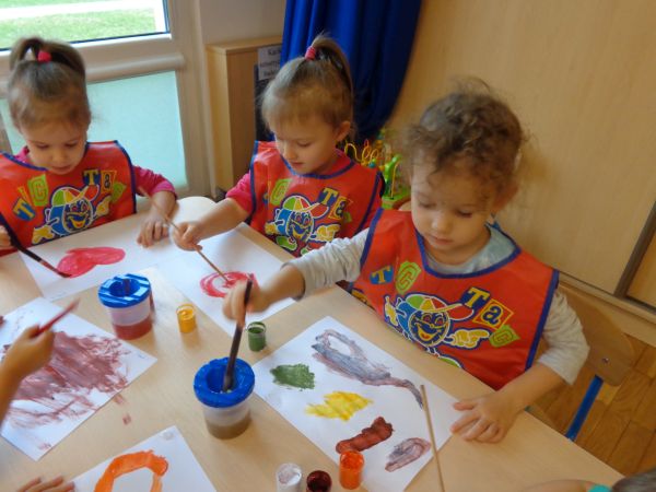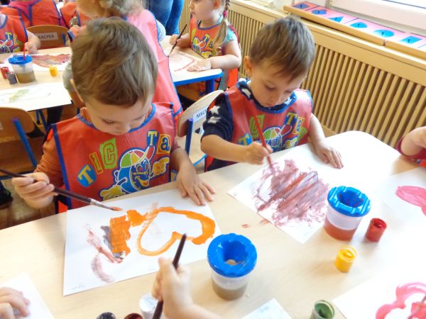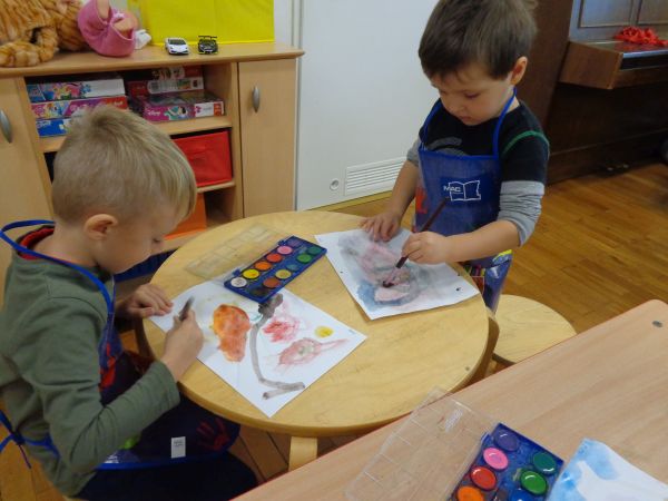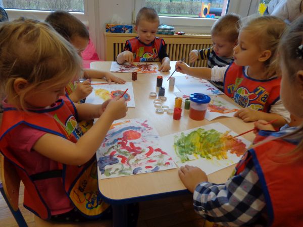 Przedszkolaki z grup "Krasnale" i "Pszczoły" wykonały twórcze prace malowane farbami. Do najważniejszych celów malowania farbami można zaliczyć: rozwijanie umiejętności wyrażania swoich przeżyć w różnorodnych formach plastycznych; poznawanie różnorodnych technik plastycznych; sprawnie posługiwanie się narzędziami; usprawnianie pracy rąk. Spod pędzli naszych najmłodszych przedszkolaków wyszły wspaniałe dzieła, niektóre z nich prezentowały wymarzone prezenty od świętego Mikołaja.