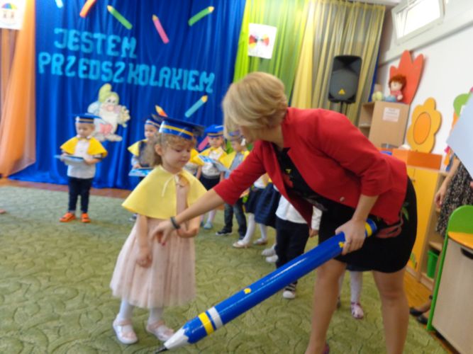 W dniu 6 listopada odbyła sie uroczystość "Pasowanie na Przedszkolaka" w grupie Krasnale. Dzieci zaprezentowały rodzicom umiejętności słowo-wokalne, taneczne, znajomości (rozumienia) języka angielskiego poprzez prezentację wybranych wierszy, tańców, piosenek i zabaw. Celem uroczystości było przyjęcie do grona przedszkolaków nowo przybyłych dzieci, nawiązanie bliższego kontaktu z rodzicami, tworzenie w przedszkolu atmosfery radości, przyjaźni i zaufania, wzmacnianie więzi emocjonalnej dziecka z rodzicami i nauczycielem, kształtowanie umiejętności współdziałania w grupie, pokonanie leku przed wystąpienia i publicznymi, wzmacnianie wiary we własne możliwości.