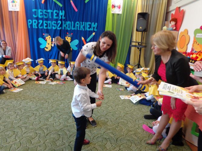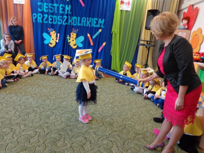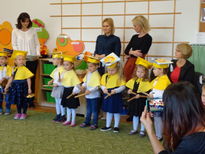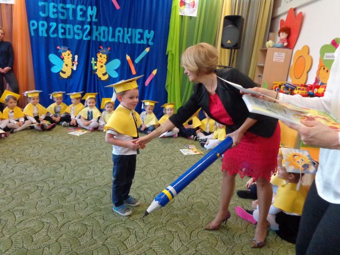 5 listopada odbyła się uroczystość pasowania dzieci z grupy "Pszczoły" na pełnoprawnych przedszkolaków. Dzieci zaprezentowały zgromadzonym gościom przygotowany program artystyczny. Wspólne spotkanie miało na celu integrację dzieci i rodziców ze środowiskiem przedszkolnym, kształtowanie umiejętności współdziałania w grupie, zaprezentowanie umiejętności dzieci oraz pokonywanie nieśmiałości i lęków przed występami publicznymi.