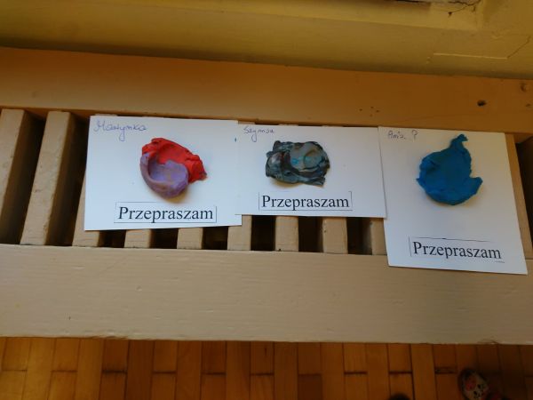 W październiku w najmłodszej grupie "Krasnale" odbyły się zajęcia pt.: "Plastelinowe ciasteczka". Zajęcia dotyczyły emocji, miały na celu ćwiczenie umiejętności wyrażania emocji towarzyszących złości i przebaczeniu/przepraszaniu.