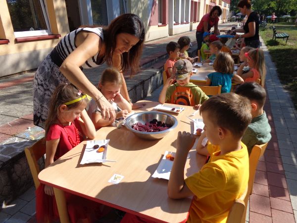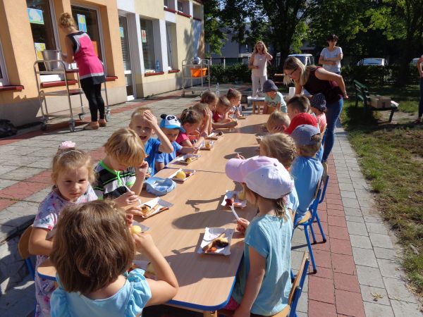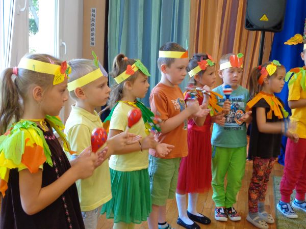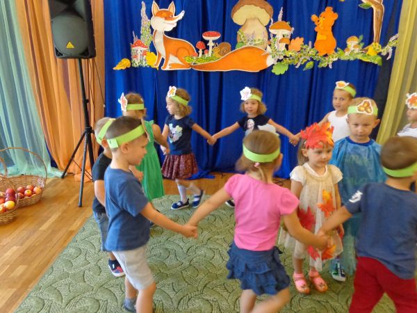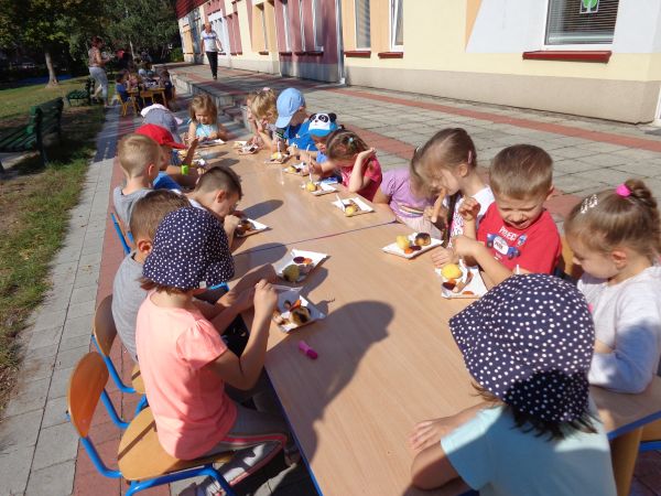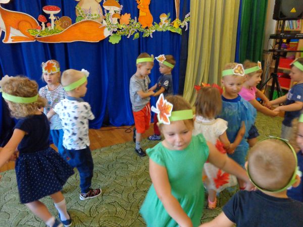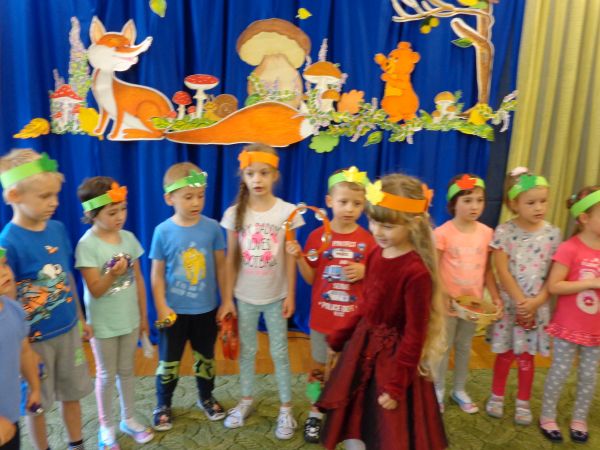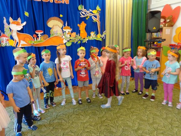 21.09. zgodnie z tradycją w naszym przedszkolu odbyła się uroczystość "Pożegnanie Lata - Powitanie Jesieni". Celem zabaw związanych z tematyką było utrwalenie wiadomości o jesieni, integrowanie się dzieci oraz wspaniała zabawa. Przedszkolaki z grupy Plastusie zaprezentowały krótką część artystyczną, a następnie zaprosiły do występów dla Pani Jesieni przedszkolaki z pozostałych grup. Po odśpiewaniu piosenek o tematyce jesiennej, korzystając z pięknej, słonecznej pogody, przedszkolaki wyszły do przedszkolnego ogrodu. Tam chętnie zjadły grillowane kiełbaski oraz ziemniaki, buraczki i marchewkę. Z pewnością dla wszystkich był to wspaniały, radosny dzień.