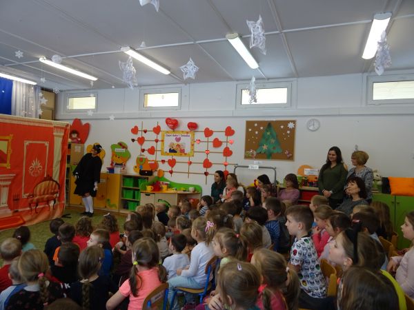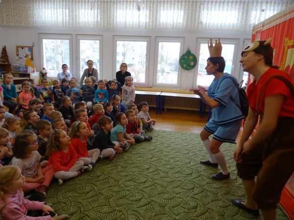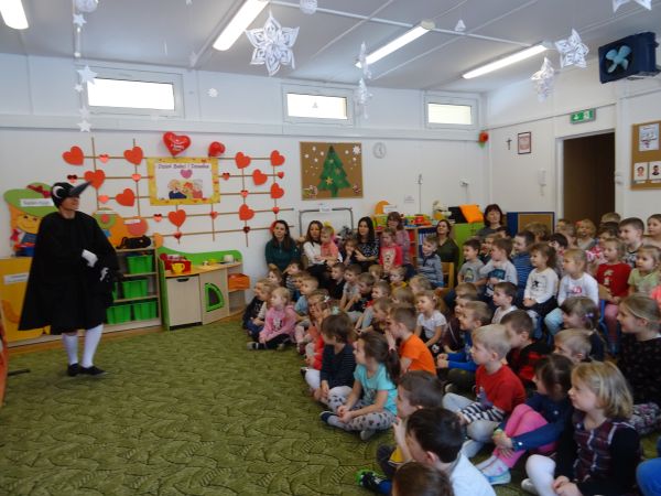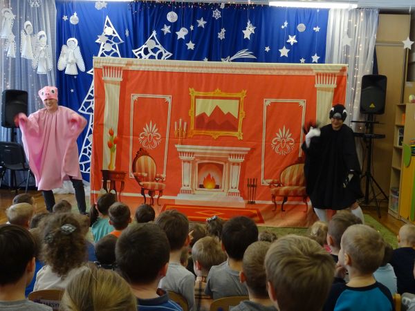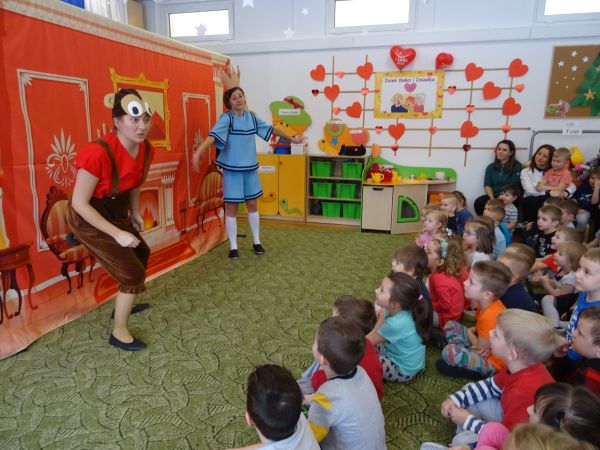 22.01.2019r. przedszkolaki obejrzały spektakl pt: "Krótkie nogi" w wykonaniu Teatrzyku Zielony Melonik. Bohaterem historii jest mały, rozkapryszony książe Karolek, który nie lubi szkoły oraz jego najlepszy przyjaciel małpka Pestka. Pewnego dnia małpka zachęca Karolka do pójścia na wagary. Dzięki utożsamieniu się z głównym bohaterem historii i jego dylematami nasze przedszkolaki mogły podjąć refleksję i zrozumieć, że kłamać zwyczajnie nie warto, że kłamstwo przynosi więcej szkód niż pożytku, a prawda zawsze wychodzi na jaw.