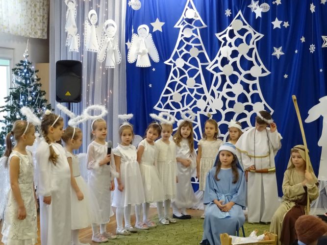 Dzięki tym spotkaniom przedszkolaki wprowadziły wszystkich w radosny nastrój oczekiwania na Święta Bożego Narodzenia.
