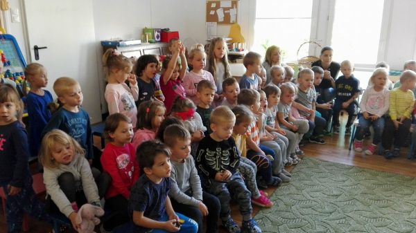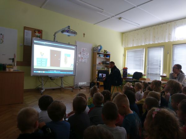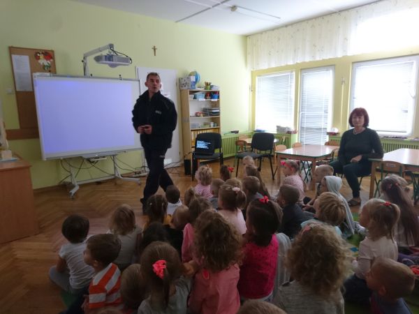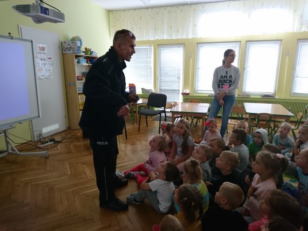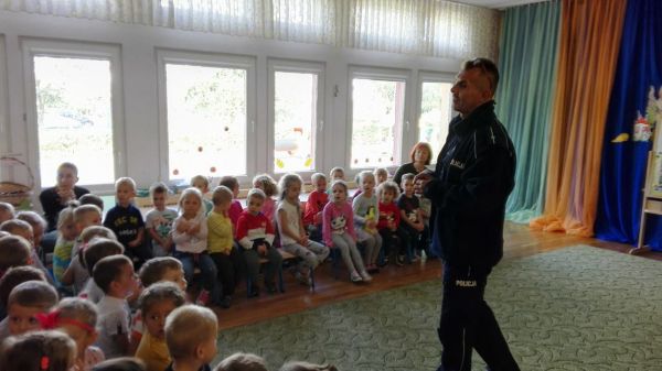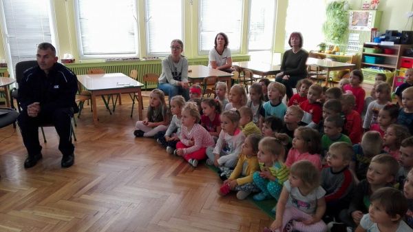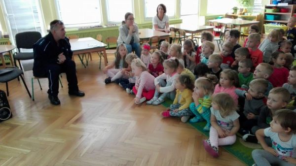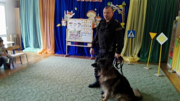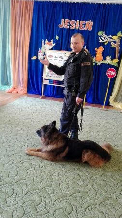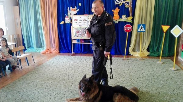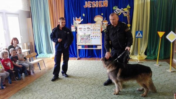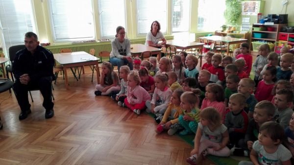 25.09.2018r. nasze Przedszkole odwiedzili niezwykli goście. Gośćmi byli Funkcjonariusze Policji ze stalowowolskiej komendy wraz z psem. Podczas bardzo interesującego spotkania omówiono zasady bezpiecznego poruszania się po drodze, bezpiecznej zabawy oraz właściwego zachowania w kontakcie z osobami obcymi. Przedszkolaki dowiedziały się także, jak powinny się zachować się w przypadku, gdy grozi im niebezpieczeństwo ze strony agresywnego psa. Policjanci zaprezentowali dzieciom film, w którym przedszkolakom zostały przypomniane telefony alarmowe oraz wskazane sytuacje, w których dzieci powinny wzywać pomoc korzystając z numerów 997 lub 112. Przedszkolaki aktywnie uczestniczyły w spotkaniu z policjantami, prezentując wiele informacji dotyczących bezpieczeństwa. Jeszcze raz serdecznie dziękujemy Panom Policjantom za jakże ciekawe i ważne spotkanie.