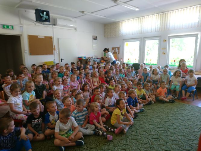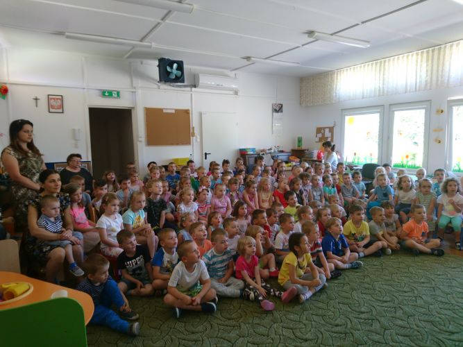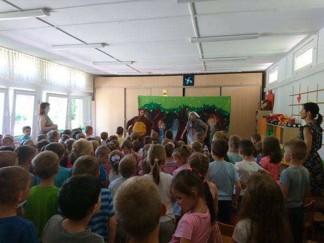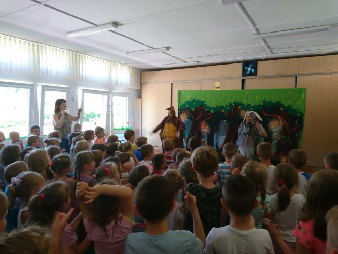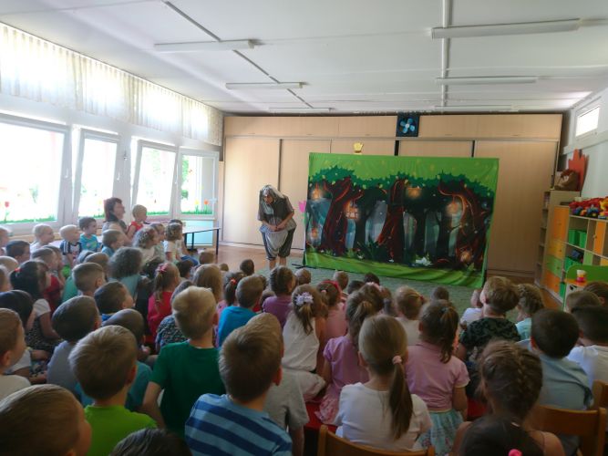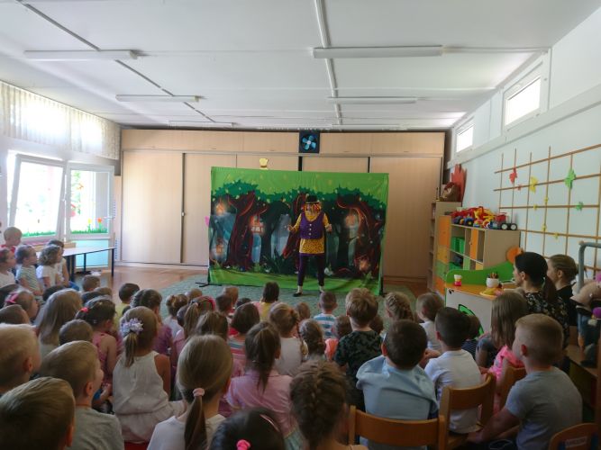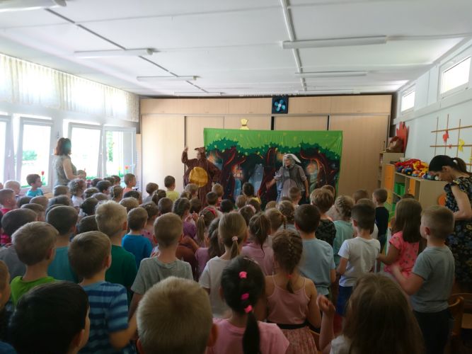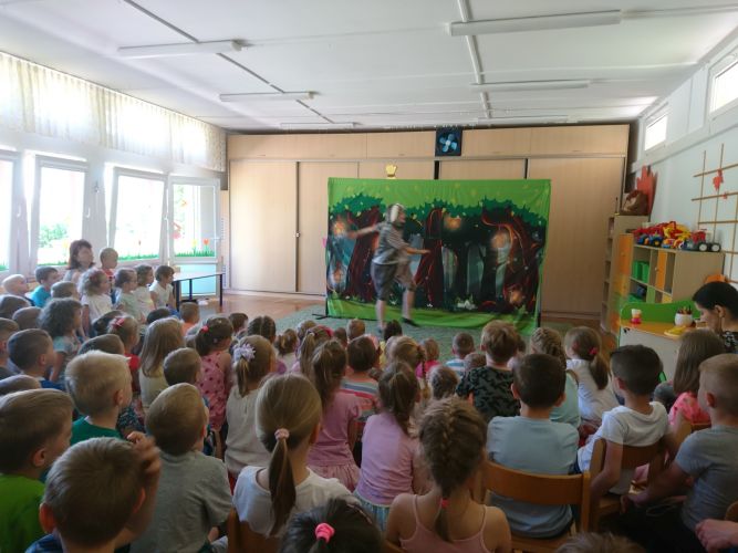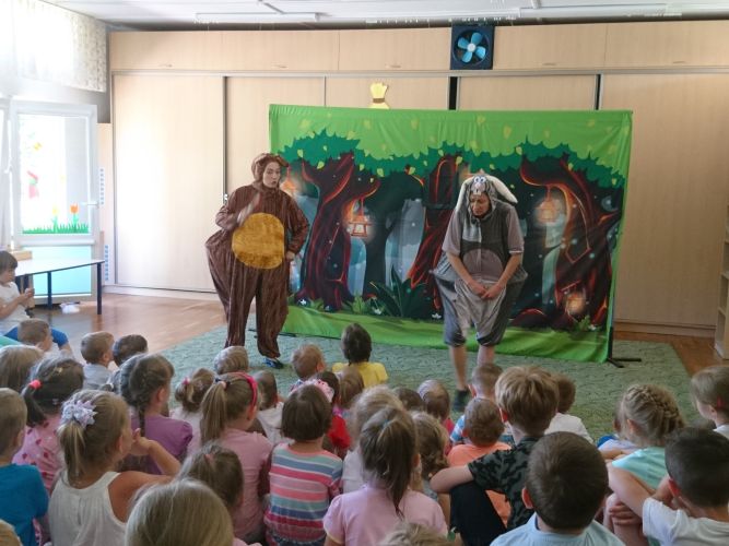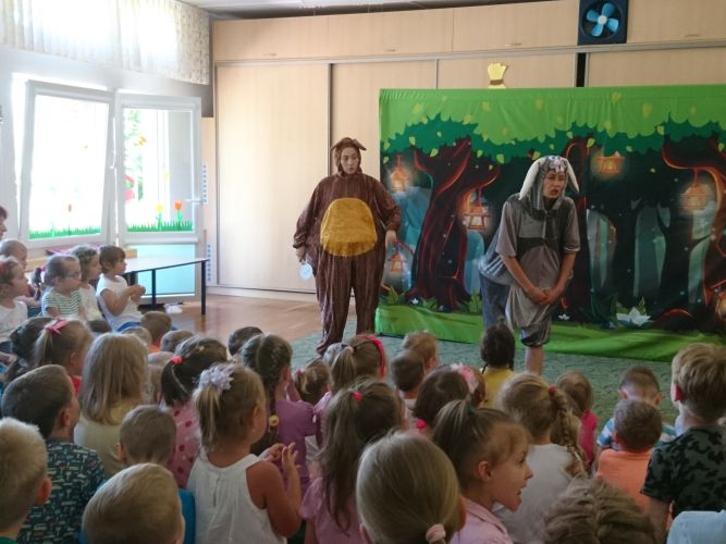 W dniu 3.06.2019 r. nasze przedszkole odwiedziła grupa artystyczna "Zielony Melonik". Dzieci oglądały teatrzyk pt. "Licho nie śpi". Celem tego spotkania była integracja społeczności przedszkola oraz wychowanie przez sztukę.