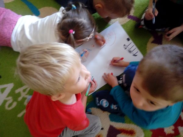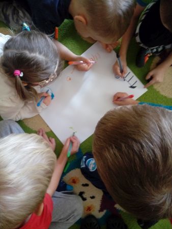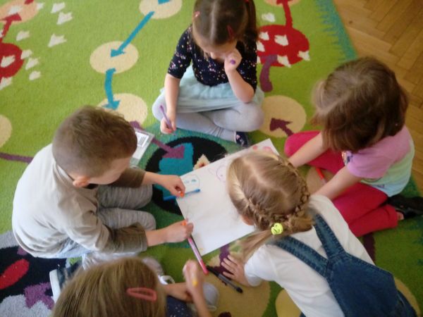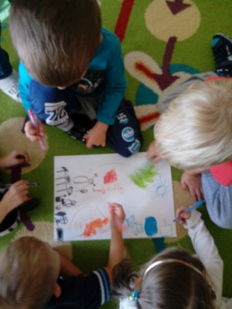 Mapa myśli jest to metoda notowania, w której używa się krótkich haseł i rysunków. Stosowanie map myśli w nauczaniu jest specjalnym sposobem notowania, który wspomaga kreatywne myślenie i zwiększa efektywność nauczania oraz przyspiesza naukę, a przede wszystkim bazuje na umiejętności logicznego kojarzenia zagadnień. Mapy myśli naszych przedszkolaków są pozbawione słów, nie są idealne, jednak pozwoliły im zaprezentować treści związane z opieką nad zwierzętami. Tworzenie map myśli przez przedszkolaki pozwala im rozwijać kreatywność, współpracę, wspiera wymianę wiedzy i umiejętność prezentowania jej innym.