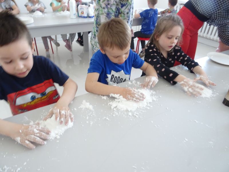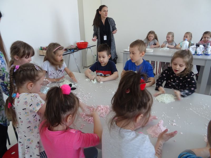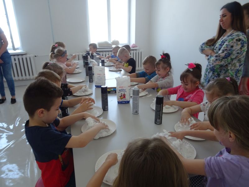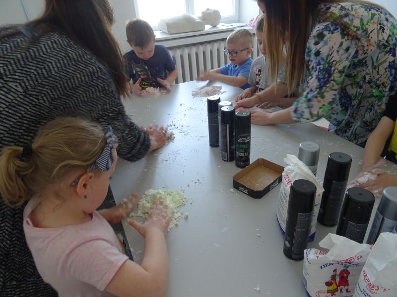 W kwietniu grupa "Biedronki" wybrała się do Galerii Malarstwa Alfonsa Karpińskiego w Rozwadowie. Podczas pobytu w Galerii przedszkolaki dowiedziały się o życiu i twórczości malarza Alfonsa Karpińskiego, mogły oglądać jego prace, a także dowiedzieć się jak wygląda praca artysty-malarza i jakie elementy są niezbędne w procesie twórczym. Zwiedzanie wystawy przedszkolaki zakończyły wizytą w prawdziwej pracowni malarskiej. Następnie, dzieci wzięły udział w warsztatach rozwijających zmysły pt. "Sensoplastyka dla smyka" w specjalnie przygotowanej przestrzeni pozwalającącej na połączenie zabawy z nauką i eksperymentowaniem. Bawialnia artystyczna stwarza możliwości przeprowadzenia zajęć z pogranicza sensoplastyki i zajęć sensorycznych, rozwijających kreatywność, twórcze myślenie, wzbogacających słownictwo. Dzięki nim każdy odwiedzający Galerię przedszkolak mógł poczuć się jak prawdziwy artysta.