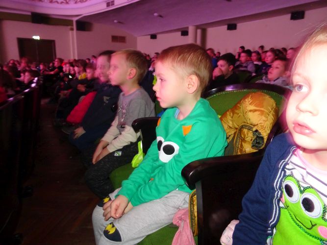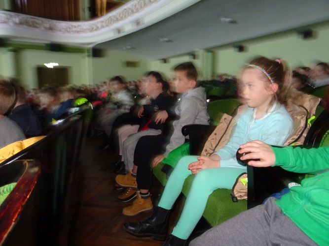 Dnia 12 marca dzieci z naszego przedszkola wybrały się do Miejskiego Domu Kultury w Stalowej Woli na przedstawienie teatralne. Wrocławski Teatr In Art przedstawił spektakl pt. "Baśnie polskie", składający się z trzech przedstawień: "Szewczyk Dratewka", "Żywa Woda", "Złota Kaczka". Dzieci miały możliwość oglądania niespotykanych form teatralnych, pięknych lalek i barwnych kostiumów. Spektakl pomógł dzieciom zrozumieć, "co jest miarą prawdziwego człowieka?". Dobre serce szewczyka Dratewki sprawiło, że zwierzęta przyszły mu z pomocą w godzinie najcięższej próby. Pewien młodzieniec zdobył uzdrawiającą wodę dla chorej matki tylko dlatego, że nie uległ pokusom bogactwa i sławy, a ubogi chłopiec w „Złotej Kaczce” odrzucił takie bogactwo, którym nie można się podzielić, w zamian otrzymał proste lecz szczęśliwe życie. Przesłanie, które wypływało z bajek było takie, że wszystko w życiu każdego człowieka zależy od jego postępowania, odwagi i właściwej postawy.