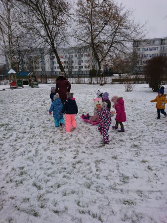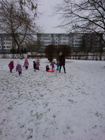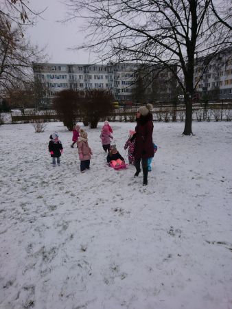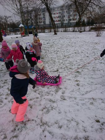 Korzystając z pięknej zimowej pogody grupa "Krasnale" wybrała się do przedszkolnego ogrodu na saneczki. Zabawy sprawiły dzieciom mnóstwo radości. Ruch to zdrowie, także zimą. Pamiętajmy, że dzieci do prawidłowego rozwoju potrzebują zabawy i aktywność na świeżym powietrzu o każdej porze roku!