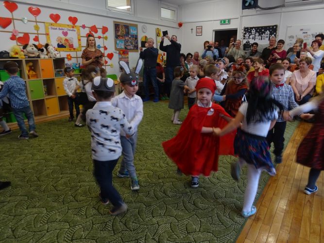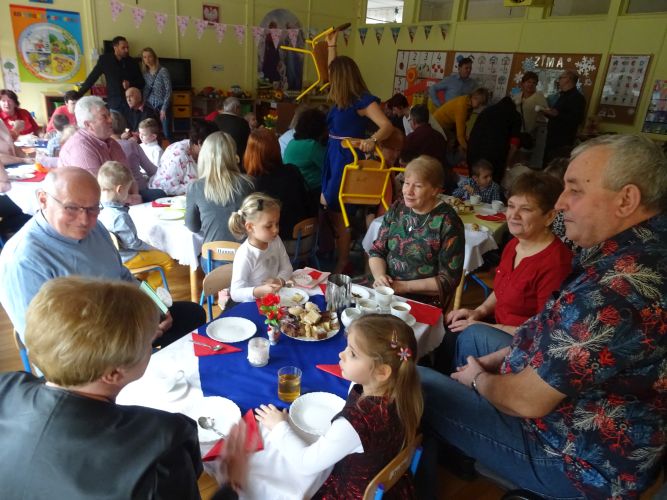 W dniu 3.02.2020 r. w grupie „Misie“ odbyła się bardzo ważna uroczystość. Do przedszkola przybyły Babcie i Dziadziowie naszych przedszkolaków. Dzieci przedstawiły krótką inscenizację „Czerwony Kapturek“, śpiewały piosenki, tańczyły, grały na instrumentach. Zaprezentowały umiejętności recytatorskie, wokalne, taneczne oraz języka angielskiego. Chórem zaśpiewały 100 lat wszystkim zebranym Babciom i Dziadziusiom oraz wręczyły samodzielnie przygotowane kartki. Po występie odbył się wspólny poczęstunek gości z wnukami.