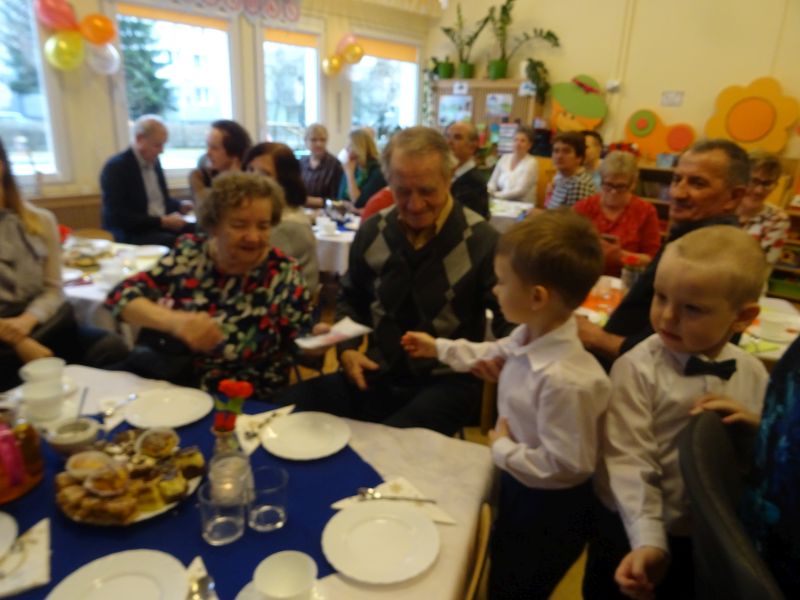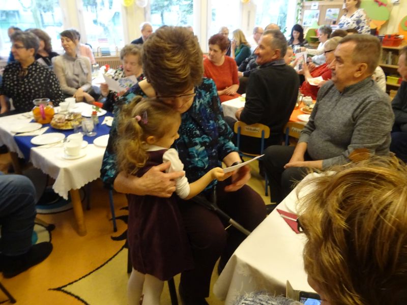 W dniu 30.01.2020 r. odbyła się uroczystość z okazji „Dnia Babci i Dziadzia“ w grupie „Krasnale“. Na uroczystość przybyli, bardzo licznie, babcie i dziadkowie naszych najmłodszych przedszkolaków. Na początku przypomniano jak ważną rolę w życiu każdego dziecka pełnią dziadkowie. Ukochanym babciom i dziadkom poprzez piosenkę i taniec dziękowano za cierpliwość, opiekę i czas, jaki poświęcają swoim wnuczętom oraz za ogrom bezinteresownej miłości. Następnie złożono życzenia dużo zdrowia oraz tego aby wnuczęta dostarczały powodów do dumy i radosnego uśmiechu. Przedszkolaki bardzo wdzięcznie i szczerze wyraziły swoje przywiązanie i szacunek kochanym babciom i dziadkom prezentując program artystyczny. Swoim najbliższym dzieci wręczyły niespodzianki przygotowane w przedszkolu wspólnie ze swoimi paniami. Uroczystość zakończono wspólną gościną przy stole zastawionym domowym ciastem przygotowanym przez rodziców i personel przedszkola.