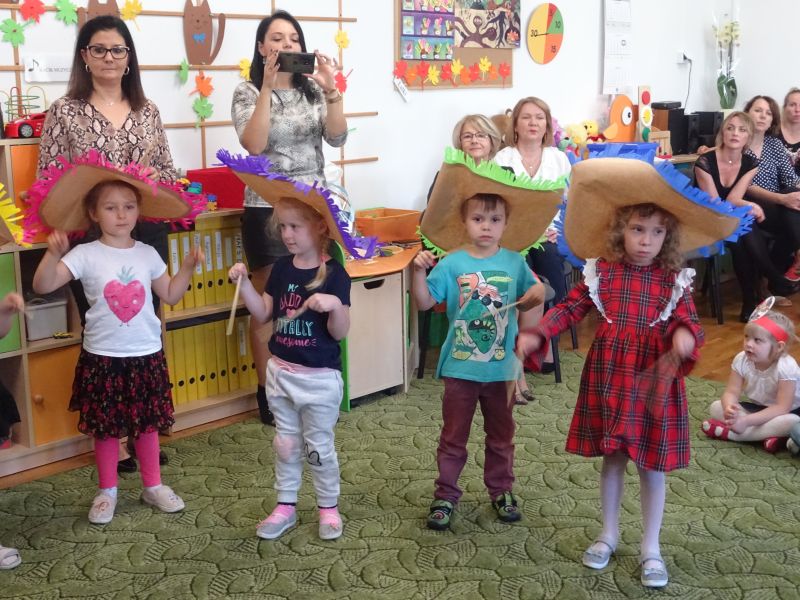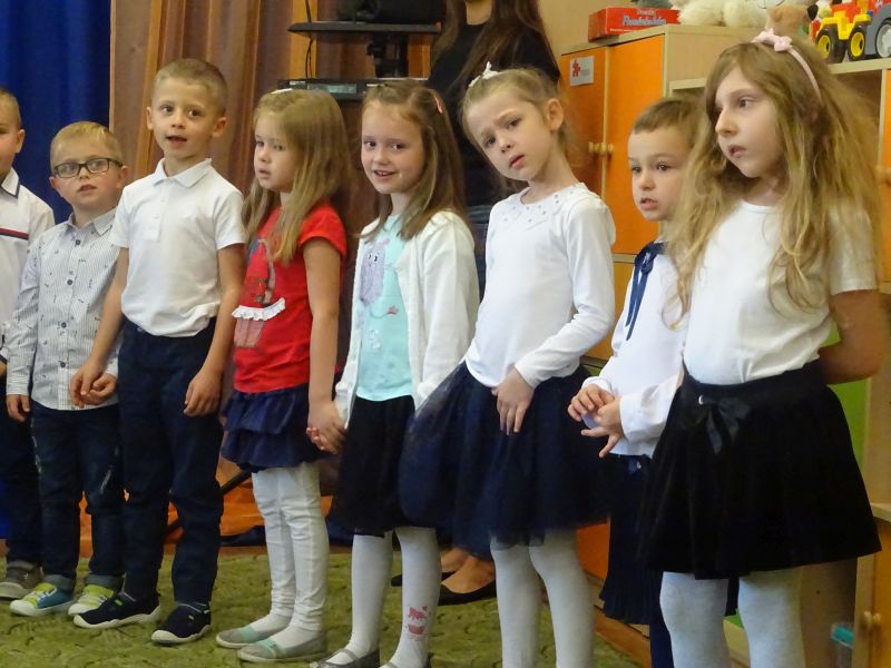 Dzieci przygotowały montaż słowno – muzyczny, recytowały wiersze okolicznościowe, zaśpiewały piosenki oraz zatańczyły. Dzieci w ten sposób podziękowały za opiekę, wychowanie, naukę, troskliwe ramiona, dobre rady, czyste sale, wszelkie naprawy i smaczne posiłki. Podziękowania i życzenia złożyła p. dyrektor i przedstawicielka z Rady Rodziców.