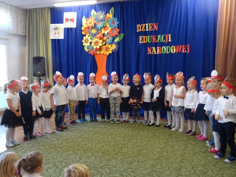 Dzień utworzenia Komisji Edukacji Narodowej obchodzimy co roku jako Dzień Edukacji Narodowej. Jest to święto nie tylko nauczycieli, ale wszystkich pracowników przedszkola. To właśnie 14 października w naszym przedszkolu odbyła się uroczysta akademia przygotowana przez najmłodszą grupę „Krasnale“, na której zgromadziły się wszystkie przedszkolaki i pracownicy przedszkola.