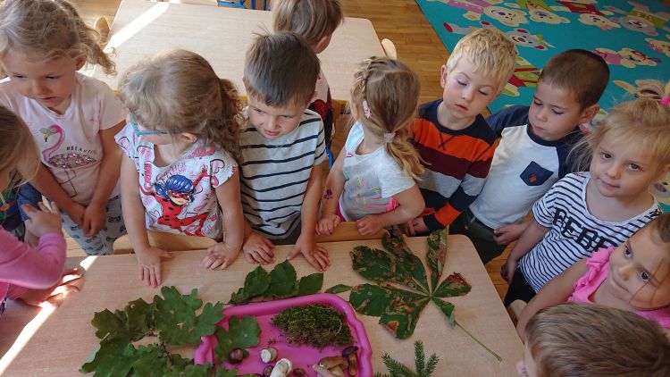 Świat przyrody jest piękny, tajemniczy, fascynujący- szczególnie dla dzieci. Świat ten dostarcza nam pozytywnych emocji, wzruszenia, ciszy, wzbudza zainteresowanie i podziw. O tym, że przyroda ze swym niezwykłym bogactwem barw zachwyca dziecko, nie trzeba nikogo przekonywać. Edukacja przyrodnicza dzieci w wieku przedszkolnym, stwarza możliwość obcowania z nią. Dzieci z grupy „Misie“ z ogromnym zainteresowaniem badały materiał naturalny z lasu. Dużo radości sprawiły im zabawy ruchowe z wykorzystaniem darów natury.