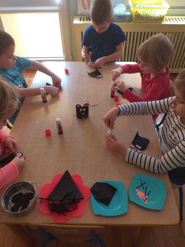 Dzieci z gr. Misie uczestniczyły w zajęciach pt.,,Gdzie mieszkają zwierzęta" rozmawiając na temat zwierząt leśnych i hodowlanych oraz środowiska,w którym mieszkają. Dzieci nazywały zwierzęta przedstawione na ilustracjach i dopasowywały zwierzęta do odpowiednich domów podając ich nazwę.Opisywały wygląd domów zwierząt pod względem wielkości, kształtu, z materiału, z którego są zbudowane i do czego służą.Dzieci bardzo chętnie dzieliły rytmicznie nazwy wybranych zwierząt na sylaby z jednoczesnym wyklaskiwaniem. Nie zabrakło również zagadek słownych na temat zwierząt mieszkających na wsi, które ,,Misie" bardzo lubią. Na zakończenie zajęć dzieci wykonały pracę przestrzenną ,,Mała myszka" według instrukcji. Dzieci dopasowywały elementy wycięte z kolorowego papieru,a następnie łączyły je za pomocą kleju w odpowiedni sposób. Dzieci podczas tych zajęć wzbogaciły swoją wiedzę dotyczącą zwierząt i środowiska, w którym mieszkają, doskonaliły koordynację wzrokowo - ruchową, percepcję wzrokową, oraz rozwijały sprawność manualną.