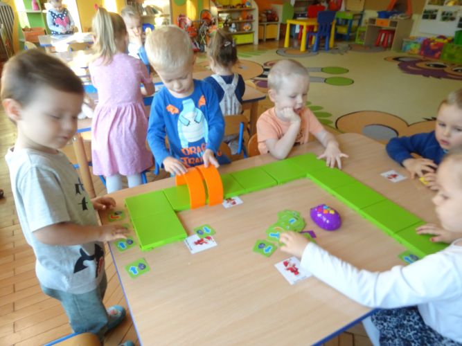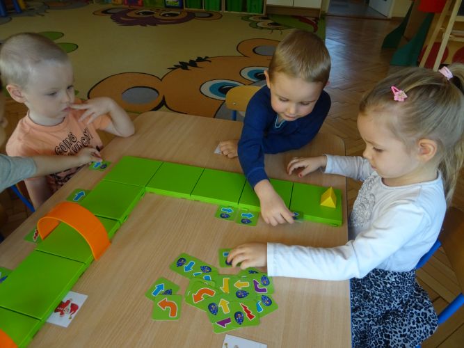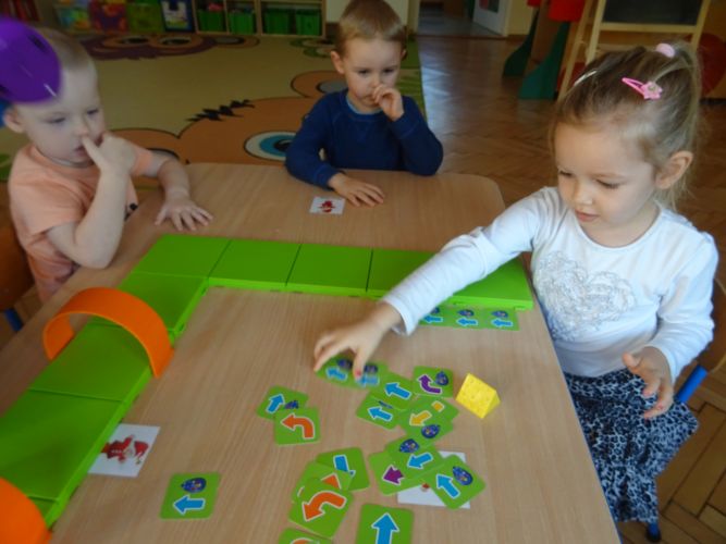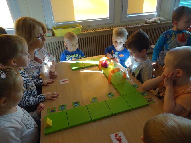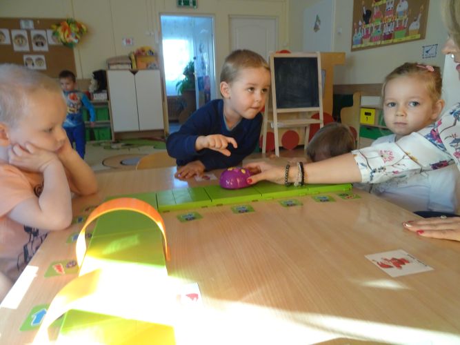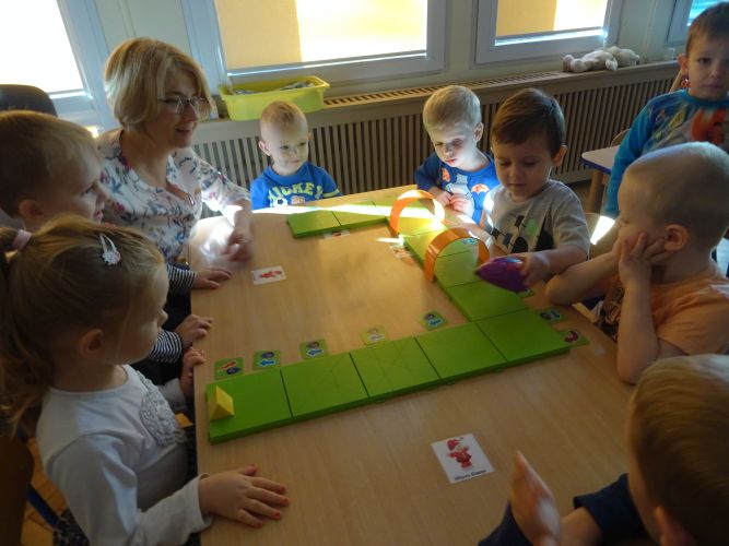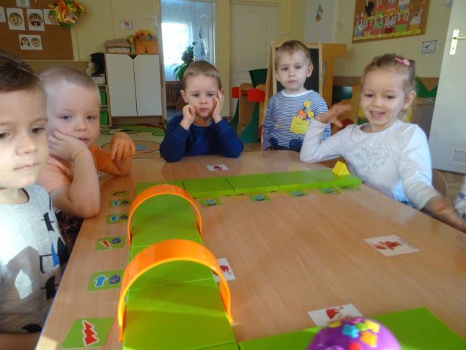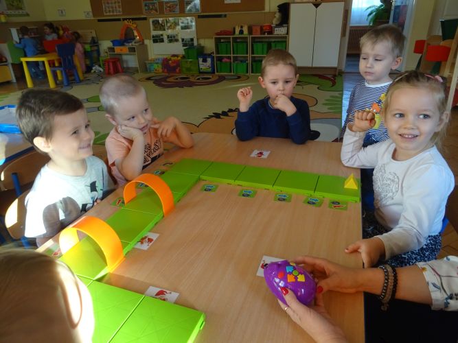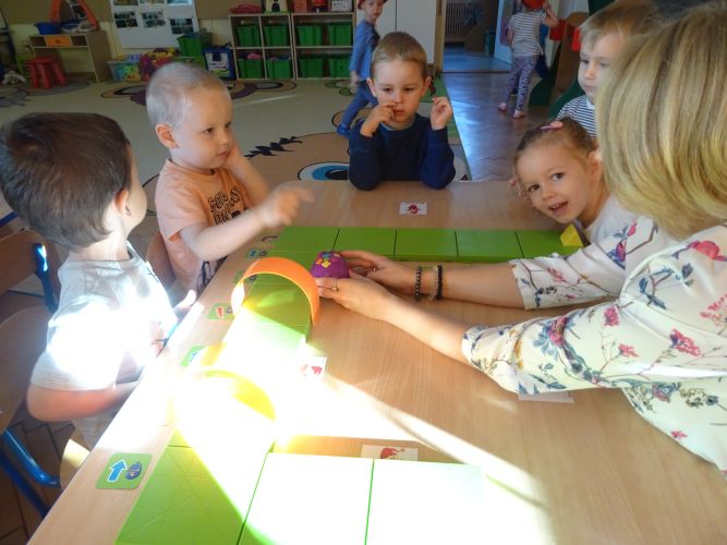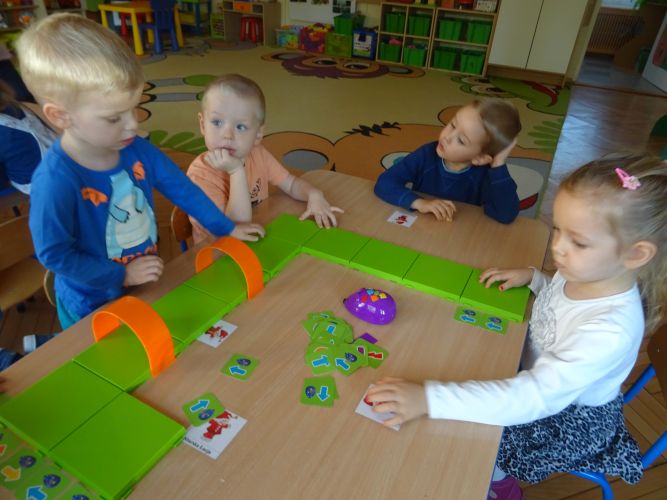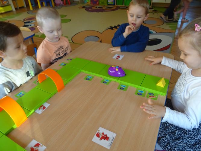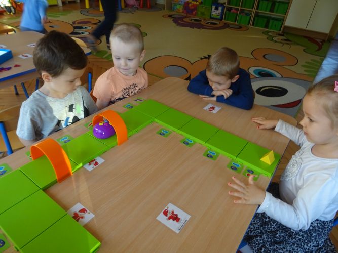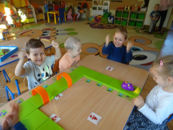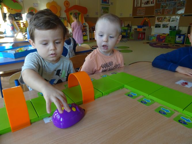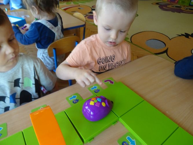 W naszym przedszkolu prowadzimy zajęcia dla przedszkolaków z wykorzystaniem między innymi zestawu, w którego skład wchodzi mysz „Robot Colby“. Zestaw ten pozwala na zapewnienie doskonałego wprowadzenia dzieci do koncepcji kodowania. W związku z tym, przedszkolaki mają możliwość rozwiązywania problemów, kształtowania logicznego myślenia, orientacji przestrzennej oraz rozwoju umiejętności nawigowania podczas zabawy z użyciem myszy „Colby“. Dzieci samodzielnie budują labirynt, a następnie używają kart kodujących, aby utworzyć krok po kroku ścieżkę dla „Colby“, programowalnej myszy - robota. Po zaprogramowaniu kolejności kroków, przedszkolaki z wielką satysfakcją obserwują wyścig myszy po ser. Zajęcia z programowania to czas aktywności umysłowej, nauki pracy w grupie, rozwoju logicznego myślenia i świetnej zabawy ! Nasze najmłodsze przedszkolaki z grupy „Krasnale“ znakomicie programowały myszkę „Colby“.