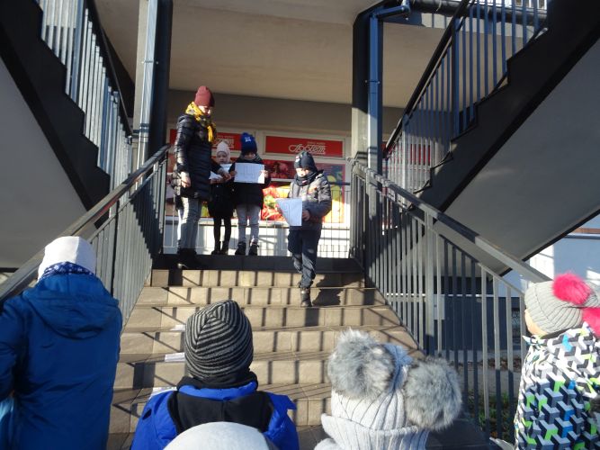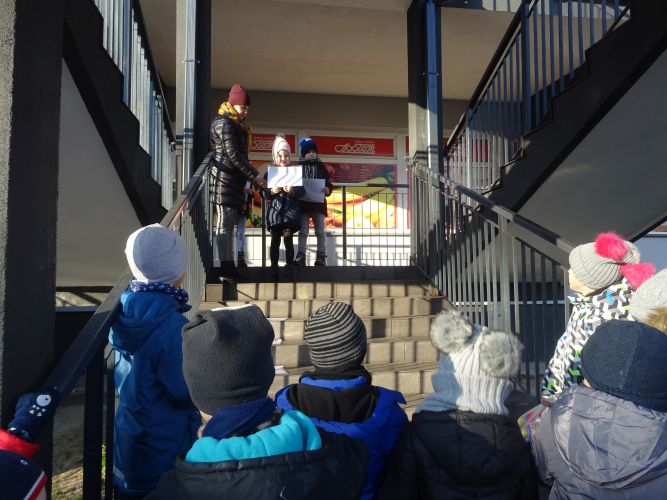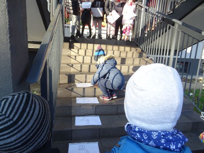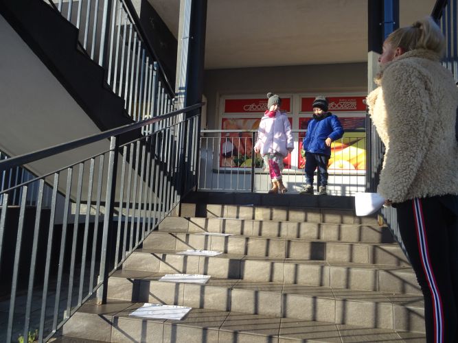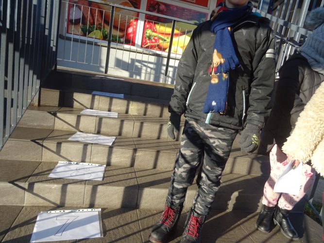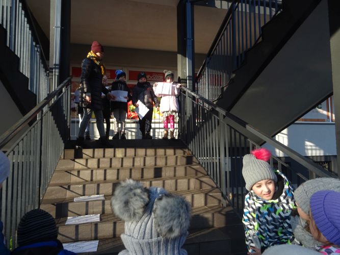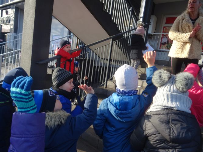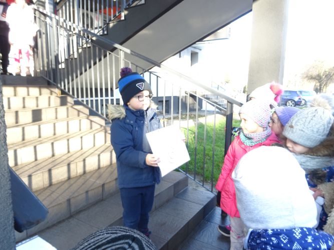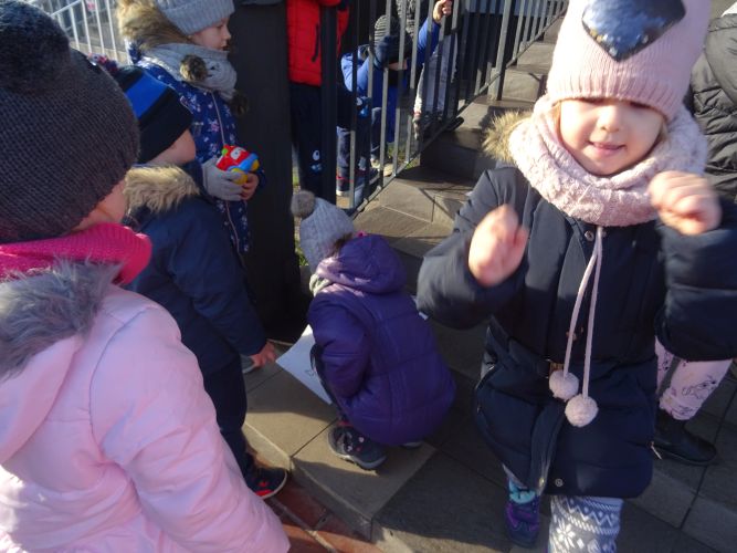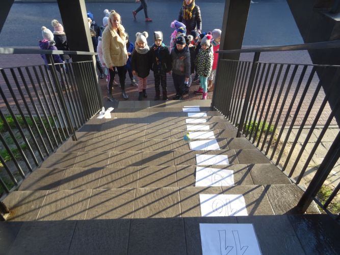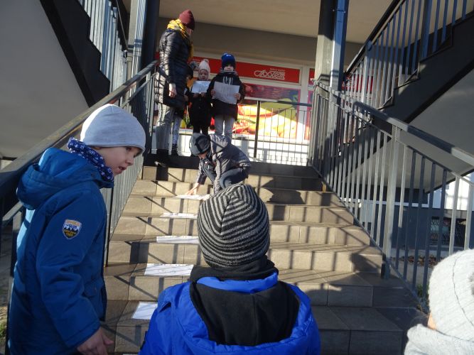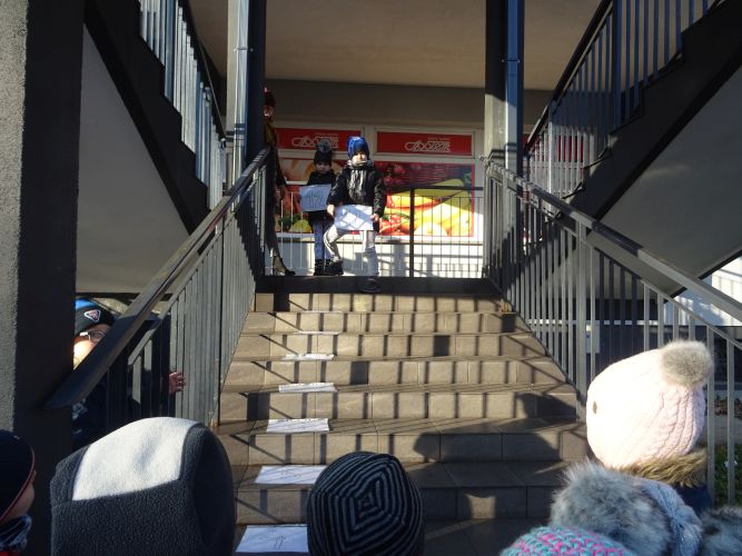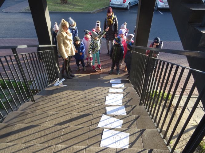 W dniu 29 listopad 2019 r. w grupie „Tygrysy“ odbyły się zajęcia matematyczne wg. metody prof. E. Gruszczyk-Kolczyńskiej pt. „Matematyczne schody“- sytuacje zadaniowe i zabawy na świeżym powietrzu, które miały na celu wspomaganie w rozwoju operacyjnego rozumowania potrzebnego do wnioskowania o aspekcie porządkowym liczby naturalnej. Zajęcia matematyczne w terenie spotkały się z pozytywnym przyjęciem przez dzieci, sprawiły im dużo radości oraz wzbogaciły wiedzę i umiejętności matematyczne.