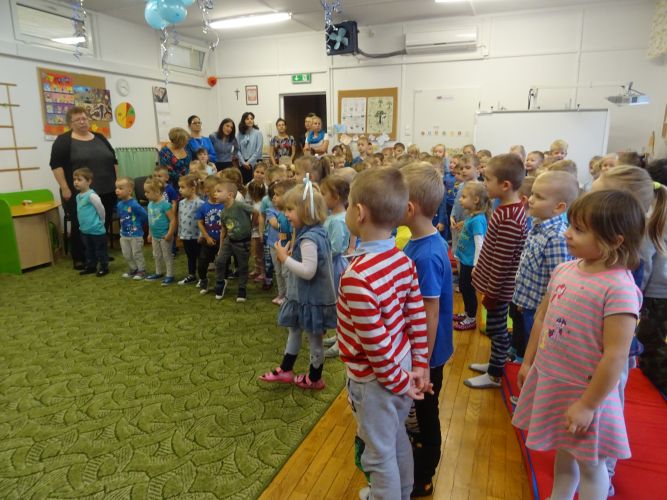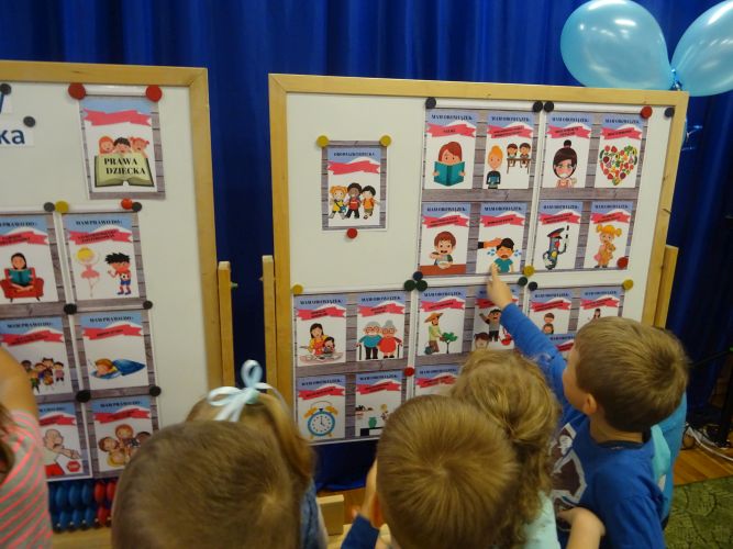 W dniu 20 listopada 2019 r. dzieci z naszego przedszkola wspólnie świętowały Międzynarodowy Dzień Praw Dziecka pod patronatem UNICEF. Dzieci wysłuchały wiadomości na temat Konwencji o Prawach Dziecka, zilustrowały ruchem treść wiersza o prawach dziecka, wysłuchały wiersza M. Brykczyńskiego „O prawach dziecka“, odgadywały zagadki, poznały przysługujące im prawa i obowiązki, wspólnie zaśpiewały piosenkę „O prawach dziecka“ Małej Orkiestry Dni Naszych, bawiły się radośnie przy piosence Majki Jeżowskiej „Wszystkie dzieci nasze są“ i „Krasnoludkach“. Uroczystość miała na celu poznanie praw dziecka wynikających z Konwencji Praw Dziecka, uświadomienie dzieciom, że oprócz praw mają również obowiązki, zintegrowanie całej społeczności przedszkolnej, stworzenie atmosfery przyjaźni i życzliwości, dostarczenie okazji do dobrej zabawy i rozwijanie sprawności ruchowej.