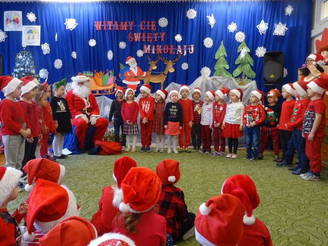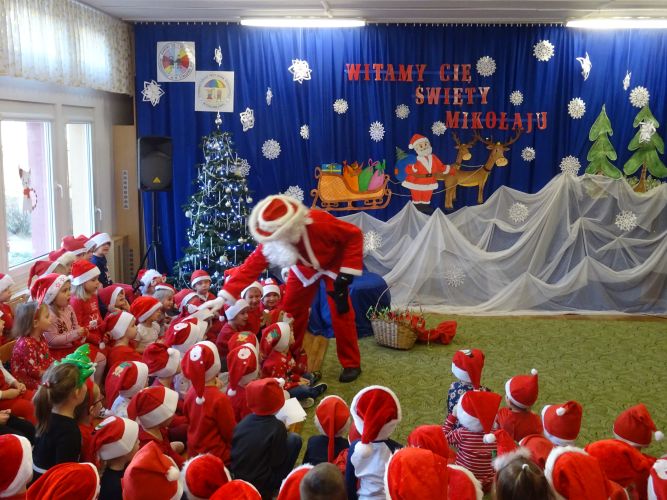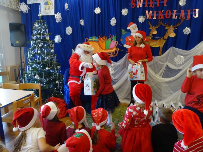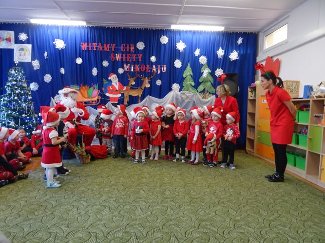 W dniu 6 grudnia 2019 r. dzieci z naszego przedszkola odwiedził Mikołaj. Przyjechał do naszego przedszkola w asyście strażaków z Komendy Powiatowej Straży Pożarnej w Stalowej Woli. Przedszkolaki zaprosiły Mikołaja wspólną piosenką. Każda grupa przedstawiła także Mikołajowi własną piosenkę. Mikołaj odwiedzał dzieci we wszystkich salach gdzie miała miejsce wspólna zabawa z Mikołajem oraz indywidualne wręczanie prezentu każdemu dziecku. Był to bardzo emocjonujący i radosny dzień !!!!