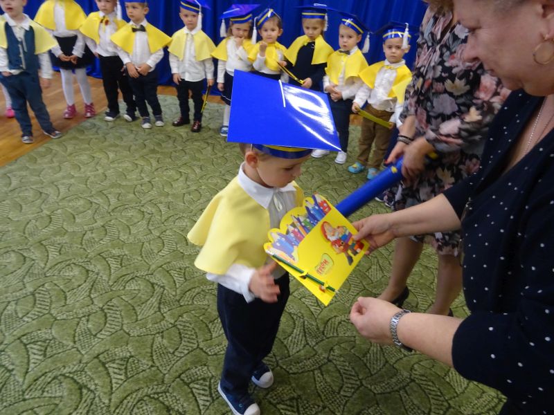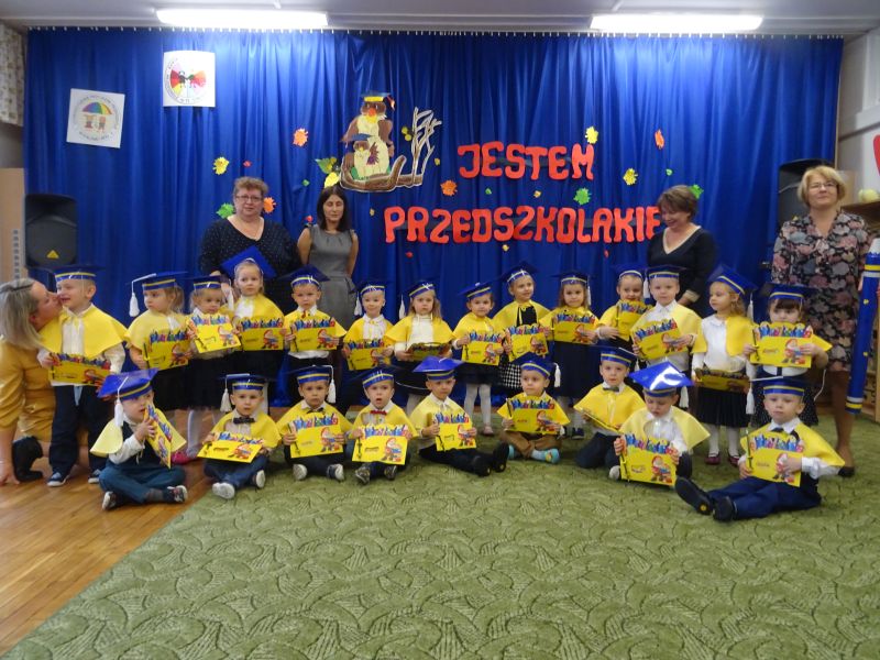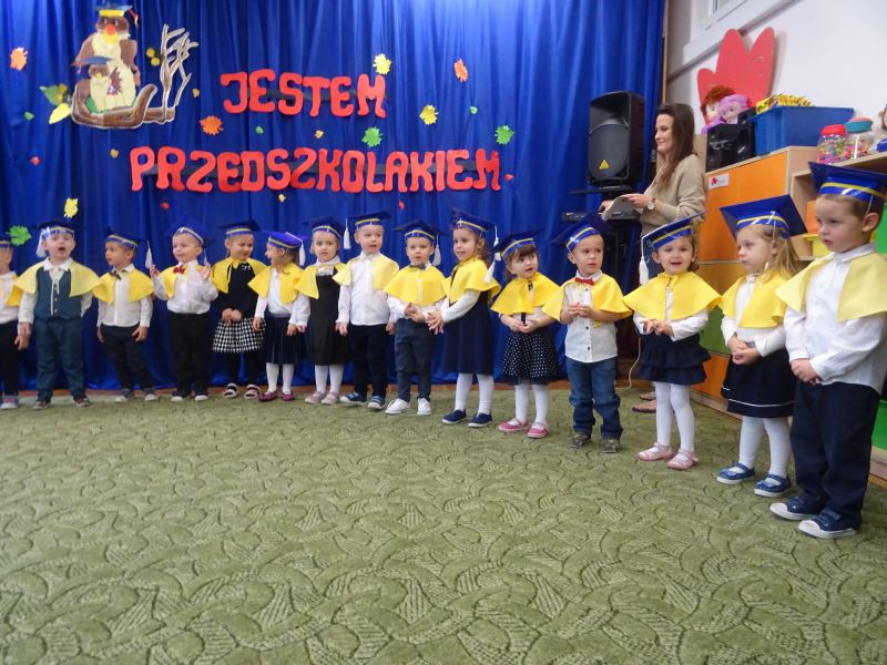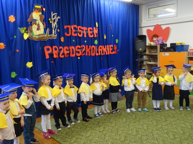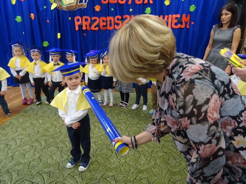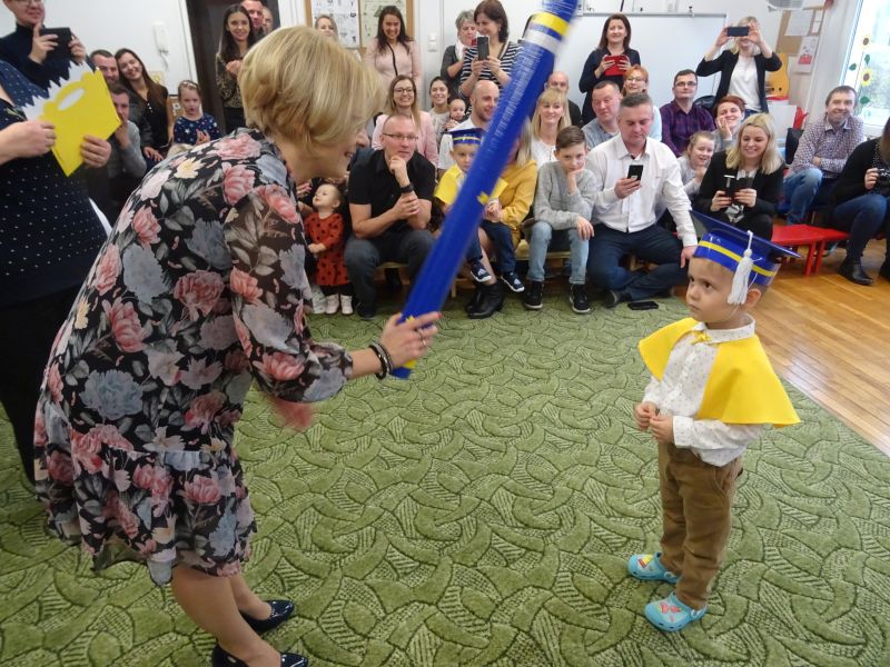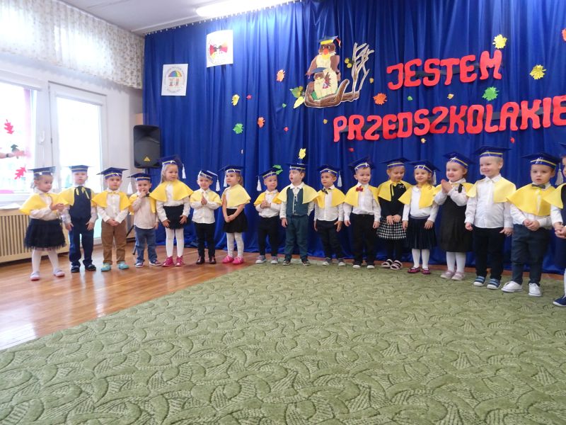 15 listopada 2019 r. odbyła się w naszym przedszkolu ważna uroczystość dla dzieci, które po raz pierwszy w tym roku szkolnym zawitały do naszego przedszkola – „Pasowanie na przedszkolaka“ Uroczystość rozpoczęła się od powitania gości i przedstawienia krótkiej części artystycznej, w której dzieci zaprezentowały swoje umiejętności – dając tym samym dowód, jak dużo już potrafią. Były więc, wierszyki,piosenki, zabawy ruchowe i tańce. Po części artystycznej, dzieci obiecały: zgodnie bawić się w przedszkolu, przychodzić każdego dnia z uśmiechem, słuchać pani i pomagać kolegom, być dzielnym przedszkolakiem. Po złożonej obietnicy, pani dyrektor dokonała uroczystego pasowania każdego dziecka na przedszkolaka. Na pamiątkę tego ważnego wydarzenia każdy przedszkolak otrzymał dyplom pasowania.