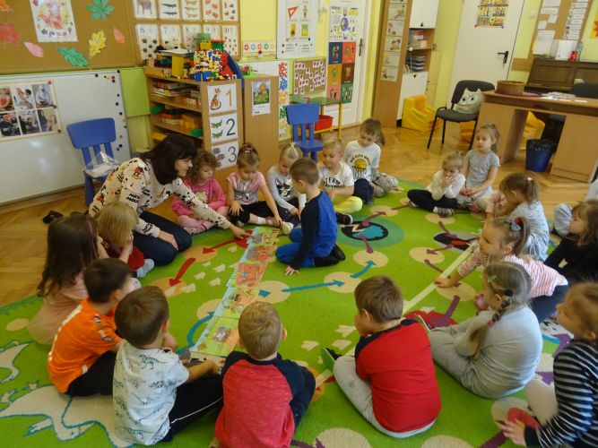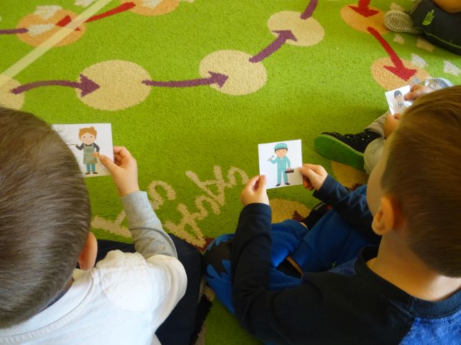 Dnia 30.10.2019 w grupie III „Biedronki“ pani B. Kowalska przeprowadziła zajęcia otwarte pt. „Zawody“. Celem zajęć była szeroko pojęta preorientacja zawodowa, rozwijanie mowy i poszerzenie zakresu słownictwa, utrwalenie umiejętności matematycznych, a przede wszystkim dobra zabawa. Dzieci entuzjastycznie uczestniczyły w zajęciach, chętnie dzieliły się informacjami na temat znanych im zawodów, opowiadały o pracy rodziców, budowały „mur“, przewoziły windą pasażerów wieżowca, samodzielnie przygotowały papierowe puzzle zgodnie z ideą planu Daltońskiego, a na koniec pozytywnie oceniły całe zajęcia.