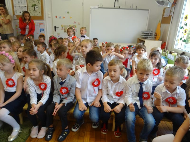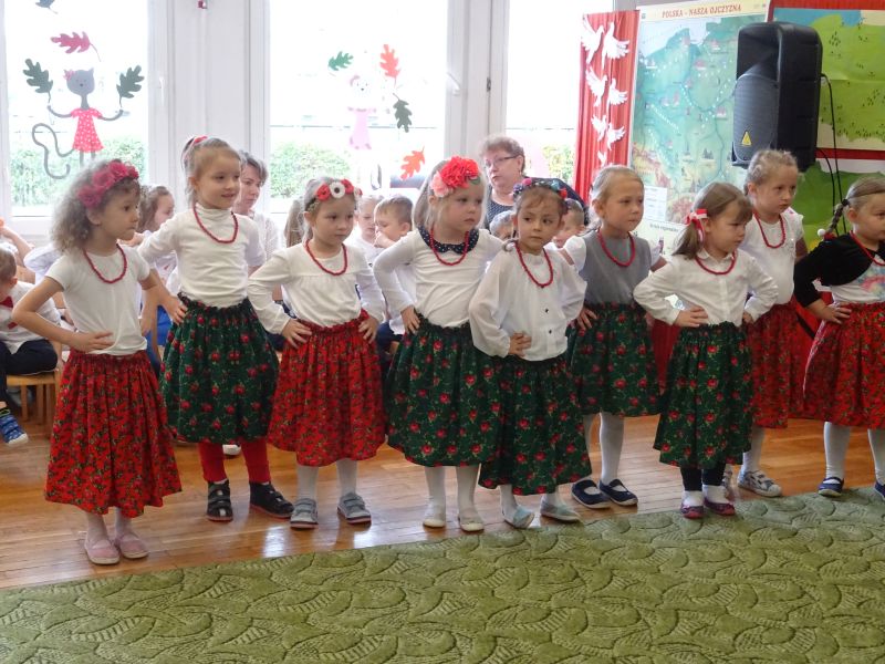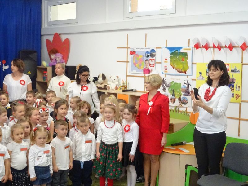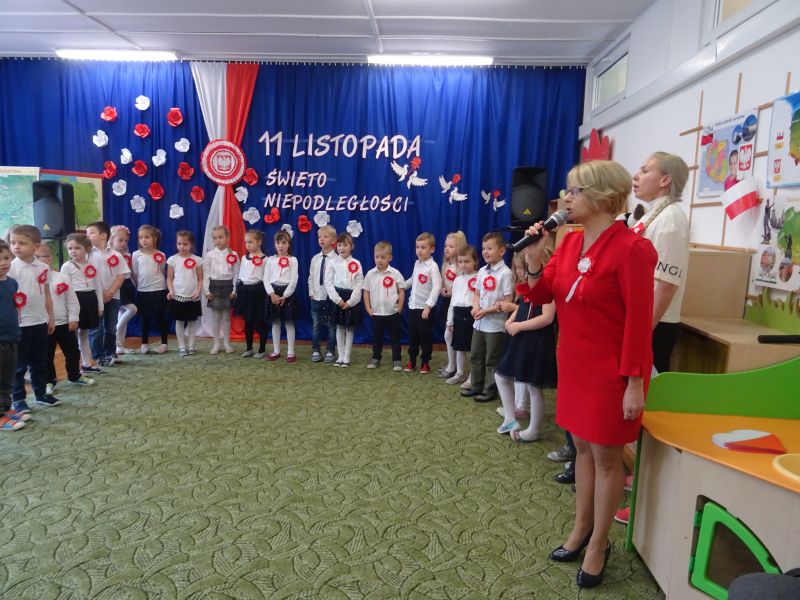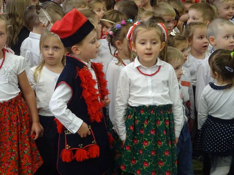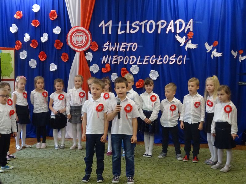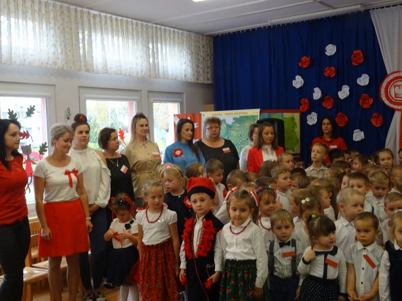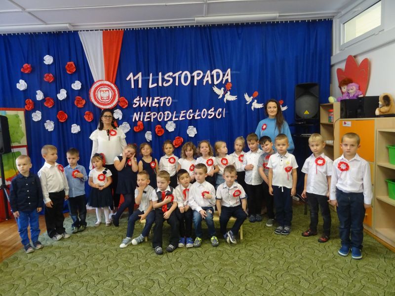 11 listopada 1918 zapisał się na zawsze na kartach historii Polski. W tym właśnie dniu po 123 latach niewoli, Polska odzyskała niepodległość. Dlatego co roku 11 listopada obchodzimy nasze święto narodowe – Święto Niepodległości. Z tej okazji 8 listopada 2019 roku wszystkie przedszkolaki świętowały ten wyjątkowy dla wszystkich Polaków dzień. Część artystyczną przygotowały dzieci z grupy „Tygrysy“. Słowem, piosenką i tańcem oddały szacunek symbolom narodowym oraz miłość do Ojczyzny. Udział przedszkolaków w takich uroczystościach to wspaniała lekcja patriotyzmu oraz kształtowanie pozytywnych postaw. W tym dniu nasze przedszkole włączyło się również do akcji MEN ,,Szkoła do hymnu” Dzieci ze wszystkich grup wraz z Panią Dyrektor, nauczycielkami i pracownikami dokładnie o 11.11 wspólnie odśpiewały pieśń Mazurka Dąbrowskiego przyłączając się tym samym do placówek oświatowych z całej Polski .