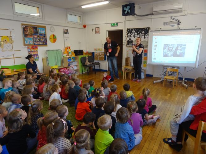 W dniu 7 stycznia 2020 r. w naszym przedszkolu odbyło się spotkanie z wolontariuszami Wielkiej Orkiestry Świątecznej Pomocy. Od najmłodszych lat kształtujmy u dzieci wrażliwość na potrzeby drugiego człowieka poprzez udział w akcjach charytatywnych !