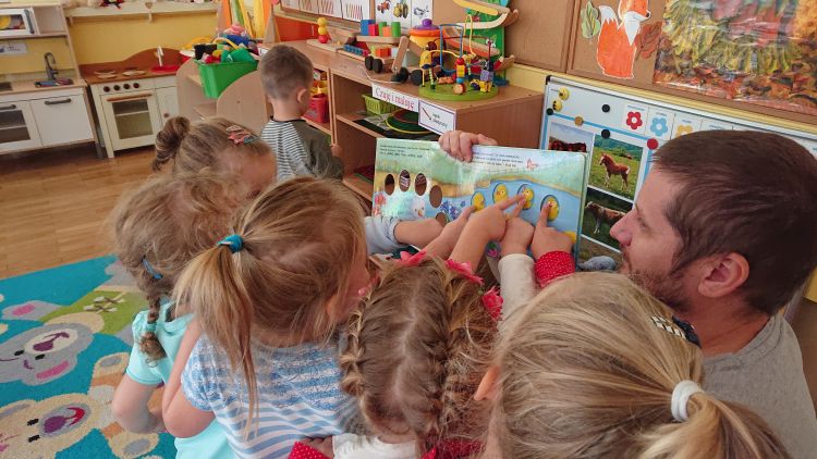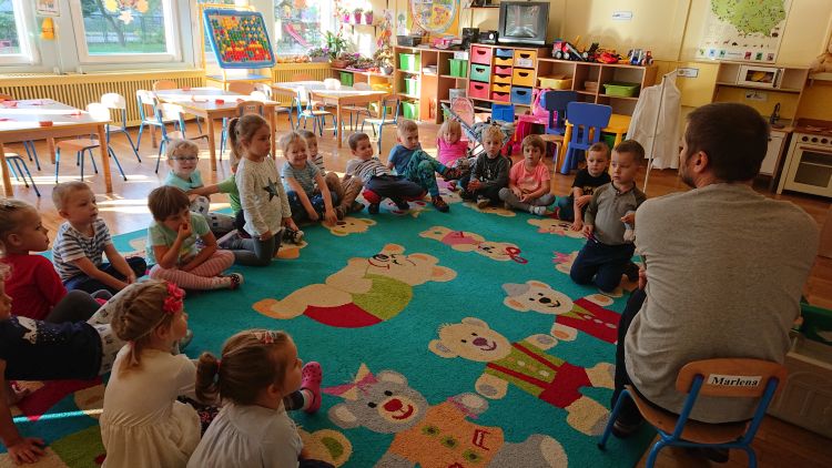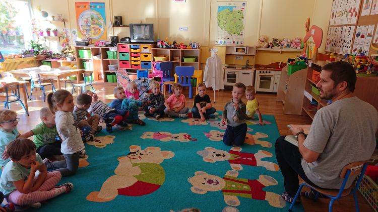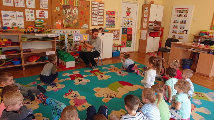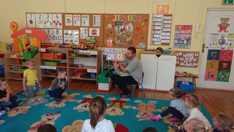 W dniu 18.10.2019 wszystkie dzieci z naszego przedszkola miały przyjemność gościć Pana bibliotekarza z Miejskiej Biblioteki Publicznej w Stalowej Woli. Krzewiąc zainteresowania czytelnicze wśród dzieci, Pan zachęcał dzieci do odwiedzania biblioteki wraz z rodzicami. Nastąpiła długo oczekiwana chwila…głośnego czytania bajek. Dzieci słuchały bardzo uważnie. Domagały się przeczytania kolejnej bajeczki - w efekcie wysłuchały trzech. Każdy pożegnał Pana bibliotekarza z uśmiechem na twarzy. Pracownik biblioteki będzie odwiedzał przedszkolaki raz w miesiącu.