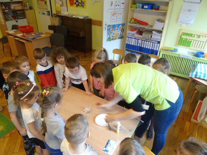 Przedszkole podejmuje wiele inicjatyw mających na celu poszerzenie wiedzy naszych wychowanków oraz wyrabianie prozdrowotnych nawyków. Jedną z nich było zaproszenie do placówki dietetyka. W dniu 25.02.2020 roku dzieci z naszego przedszkola odwiedziła Pani Anna B., mama Radzia z grupy „Misie“. Pani dietetyk przeprowadziła zajęcia w każdej grupie.W interesujący sposób przedstawiła dzieciom zawód dietetyka, poszerzyła wiedzę na temat zdrowego odżywiania, zapoznała z piramidą żywienia od produktów najzdrowszych i najbardziej wartościowych po te, które w odżywianiu mogłyby zostać wyeliminowane bez szkody dla organizmu. Tłumaczyła, dlaczego należy ograniczać słodycze i słodkie napoje, a zwiększyć spożycie warzyw i owoców, a także w jaki sposób żywność wpływa na nasze zdrowie i zachowanie.Dziękujemy Pani Aniza interesujące zajęcia !
