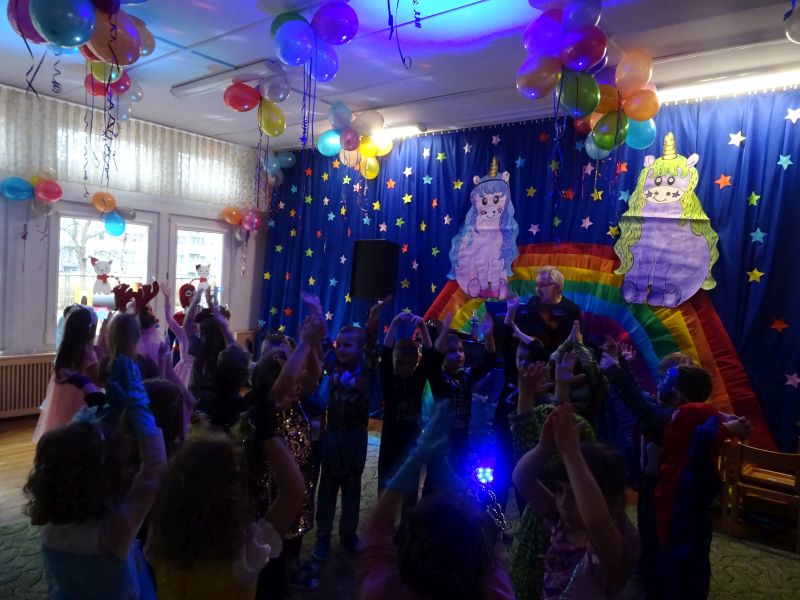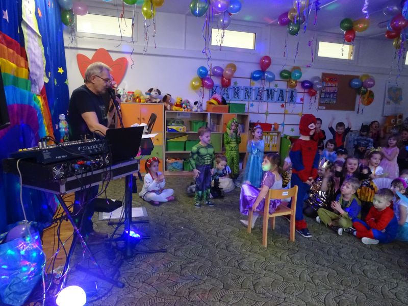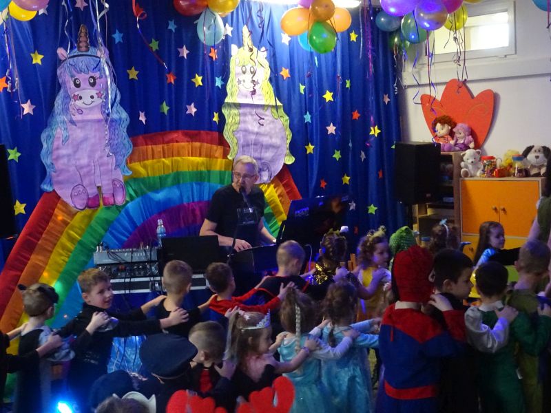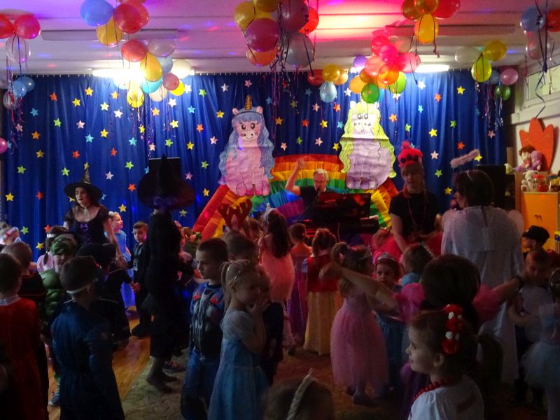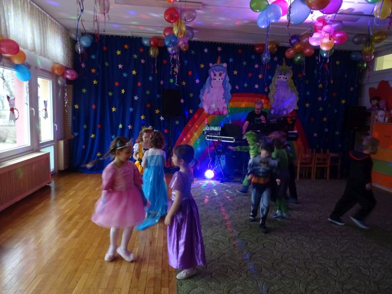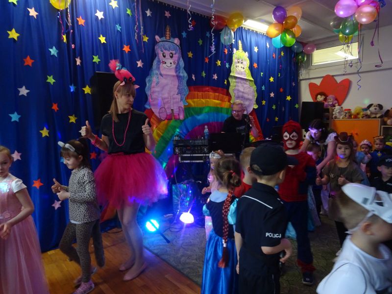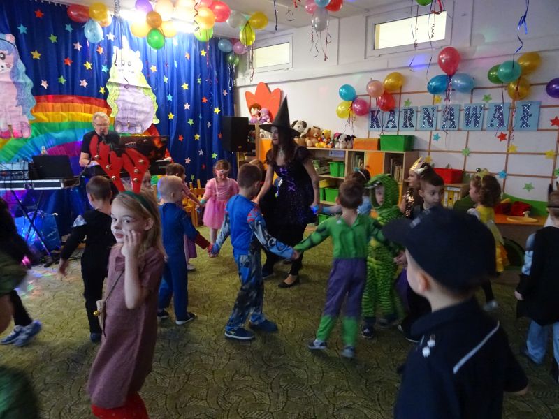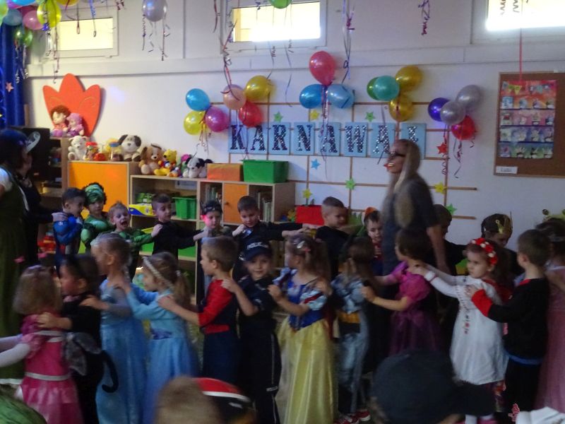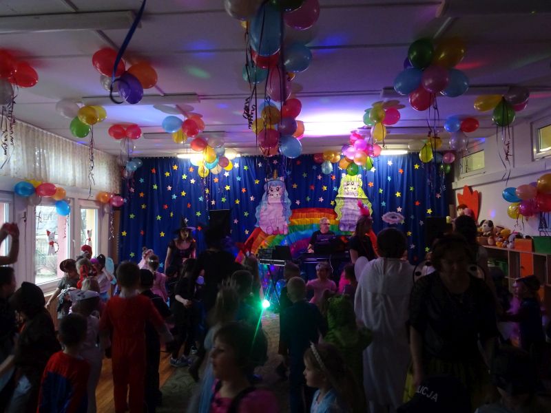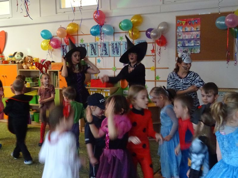 Rozpoznać dzieci było bardzo trudno. Dzieci świetnie się bawiły w gronie nauczycieli oraz wodzireja, którzy uatrakcyjnili nasz bal przebierańców, uczestnicząc we wspólnych zabawach i konkursach. Muzyka porwała wszystkich do tańca w rytm samby, walczyka i Kaczuch. W trakcie karnawałowych szaleństw zostały również wykonane pamiątkowe zdjęcia.