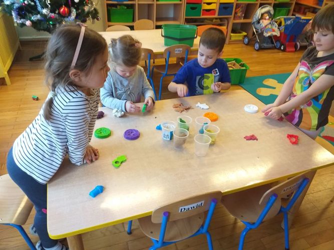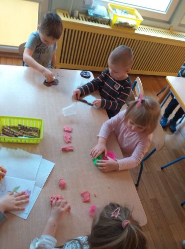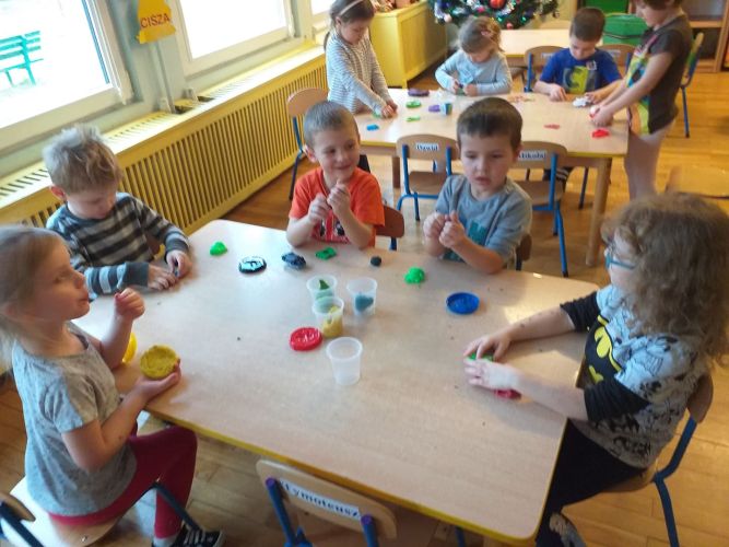 Ćwiczenia manualne z wykorzystaniem kolorowej ciastoliny. Takie ćwiczenia są dobrą okazją do swobodnych rozmów, ale przede wszystkim rozwijają dziecięcą kreatywność i wyobraźnię twórczą. Dzięki takim ćwiczeniom dzieci rozwijają małą motorykę poprzez wyrabianie, ugniatanie, modelowanie różnych kształtów z ciastoliny.