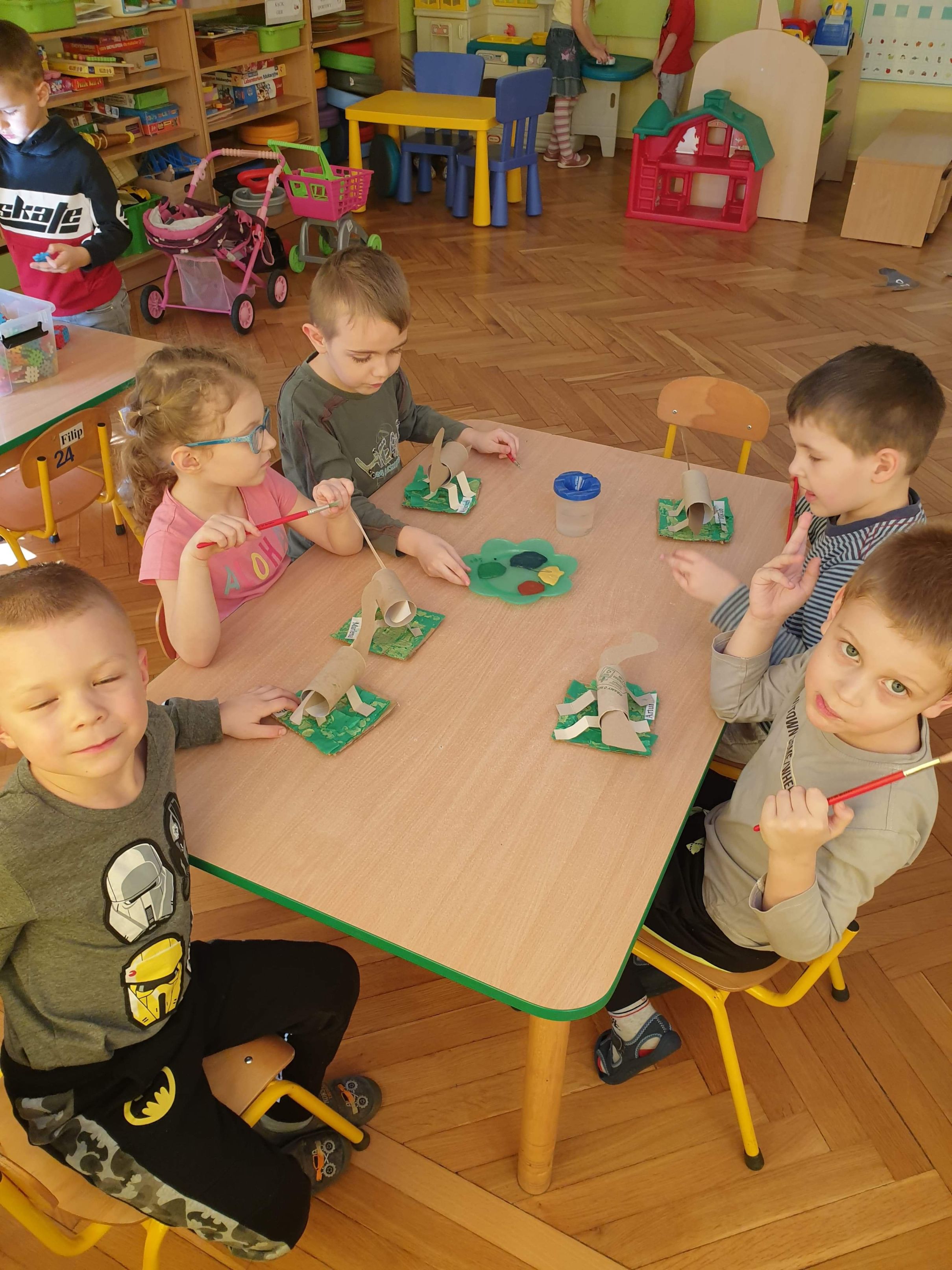 26 lutego dzieci z grupy ,,Biedronki” z okazji ,,Dnia Dinozaura” brały czynny udział w zabawach ruchowo - naśladowczych, zabawach rozwijających spostrzegawczość, słuchały ciekawostek na temat dinozaurów. Wykonały pracę plastyczno – techniczną ,,Dinozaur” w ramach realizacji projektu ,,Ekokulturalne przedszkole. Ekoplastyka”. Z tektury i rolek po papierze toaletowym wykonały postać dinozaura, którego pomalowały farbami plakatowymi według własnego pomysłu rozwijając sprawności manualne i kreatywność. Gotowe dinozaury po kilku dniach znalazły swoje miejsce w domach naszych ,,Biedronek”.