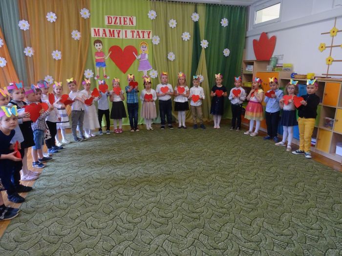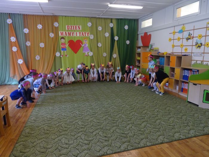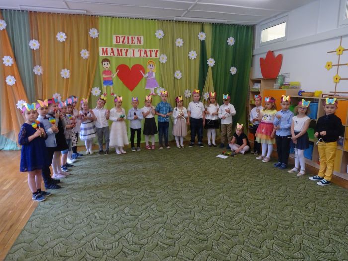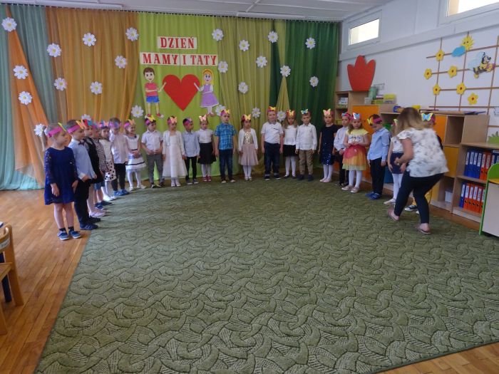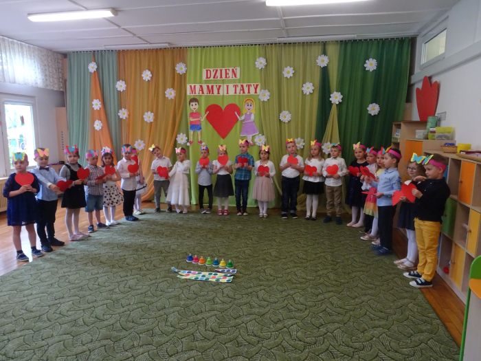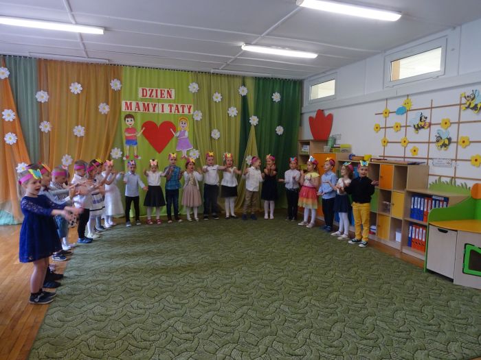 25.05.2021 r. grupa ,,Biedronki” przygotowała występ artystyczny z okazji ,,Dnia Mamy i Taty”, którego celem było budzenie szacunku dla mamy i taty oraz wyzwalanie u dzieci aktywności słowno – ruchowej, improwizacji, a także wyrabianie poczucia rytmu. Dzieci przedstawiły program składający się z wierszy, piosenek, improwizacji ruchowej, gry na instrumentach oraz aktywnego słuchania muzyki. Swoje umiejętności wokalne, taneczne oraz umiejętności gry na instrumentach muzycznych zaprezentowały min. do piosenek ,,Przyszła Wiosna”, ,,Do dzieciaków przedszkolaków…”, ,,Moja Mama”, ,,Kocham Cię”.