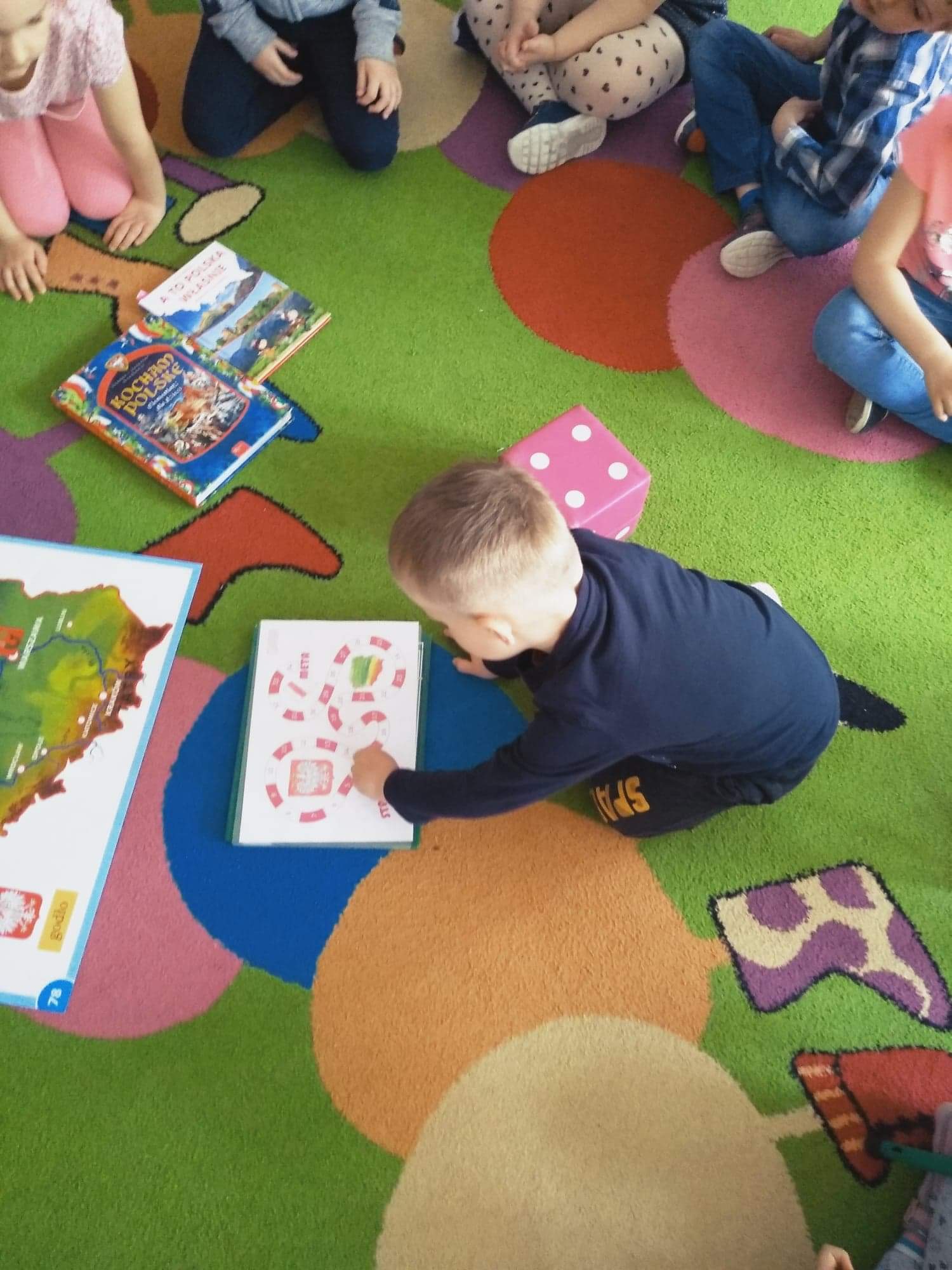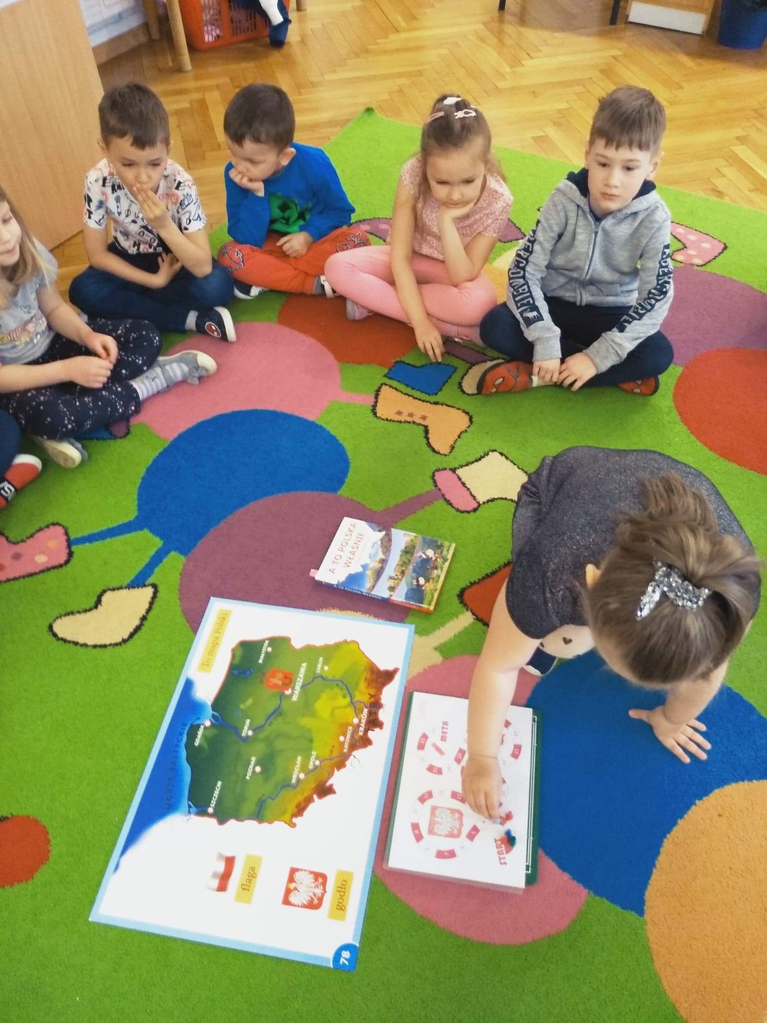 W ramach lekcji o patriotyzmie Motylki zagrały w grę edukacyjna, zadaniem każdego dziecka było rzucenie kostką policzenie, a następnie poruszenie swojego pionka tyle pół ile wskazywała liczba oczek i odpowiedzenie na pytanie z zakresu poznanych wiadomości o naszym kraju związanych m.in. z obchodami Święta Konstytucji 3ciego Maja. Motylki dzięki temu utrwaliły sobie wiedzę na temat naszego kraju, jego stolicy oraz położenia gór, morza, rzek, symboli oraz bohaterów narodowych oraz wspólnie przypomnieliśmy "Mazurek Dąbrowskiego" oraz Katechizm Polskiego Dziecka. Muzeum Regionalne w Stalowej Woli udostępniło elektroniczną wersję patriotycznej gry edukacyjnej, która można pobrać na swój dysk. jest to idealna propozycja na wspólną familijną naukę i zabawę.