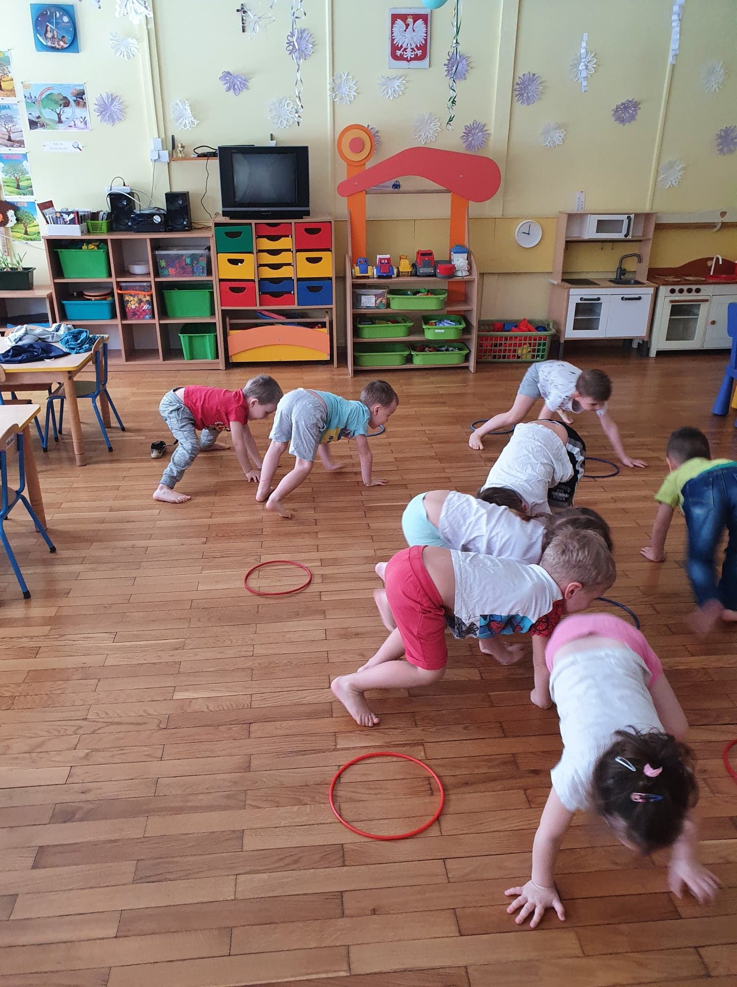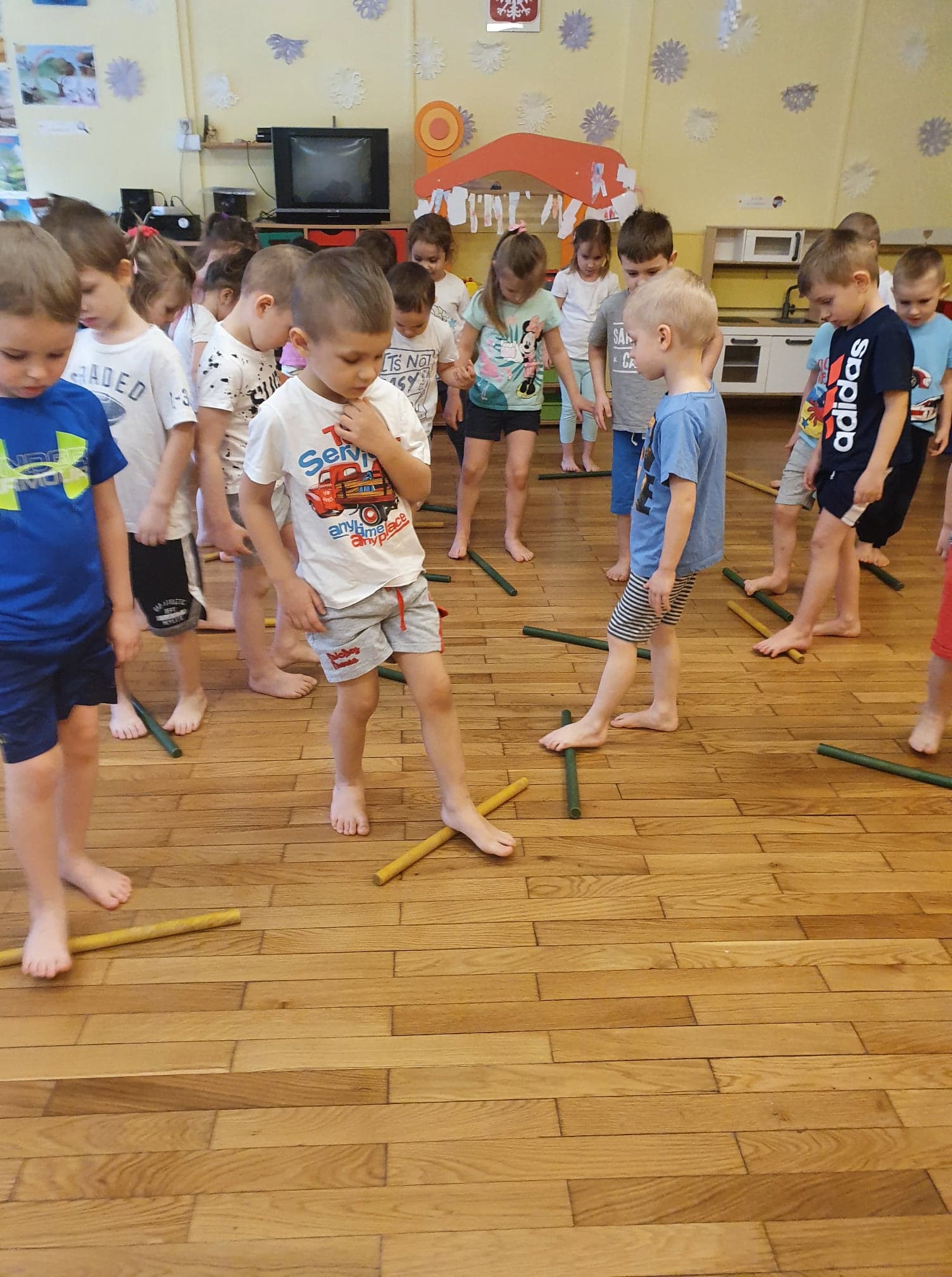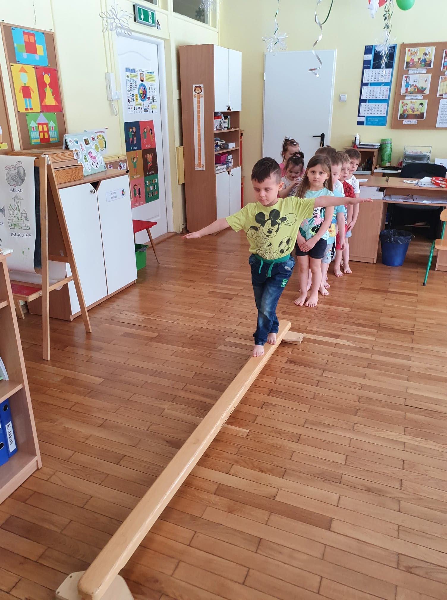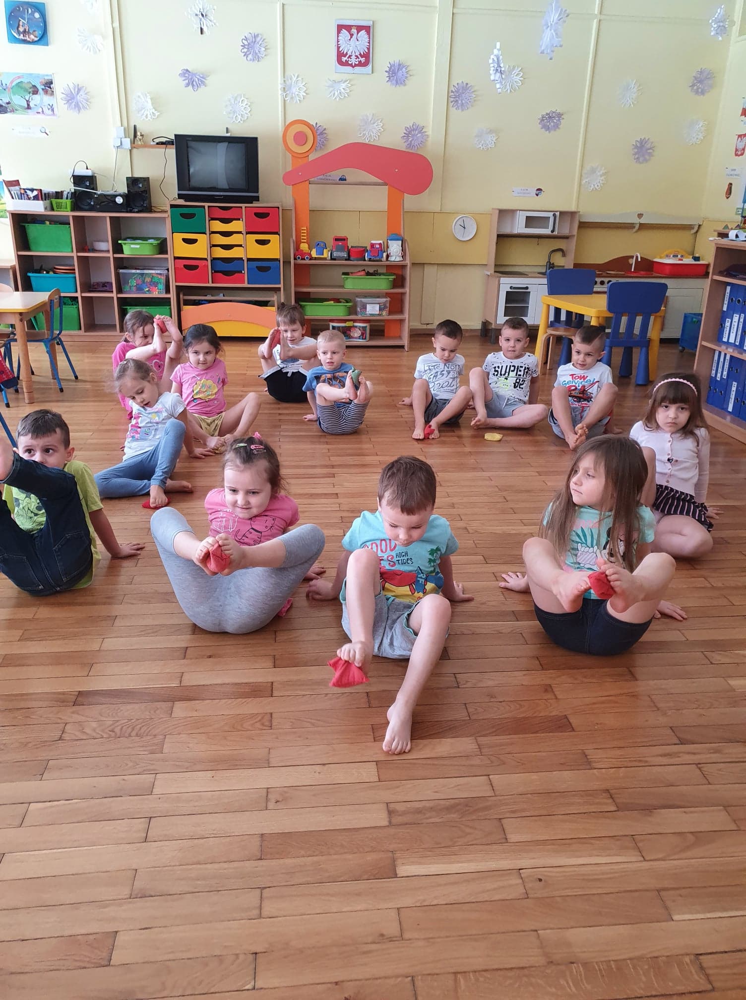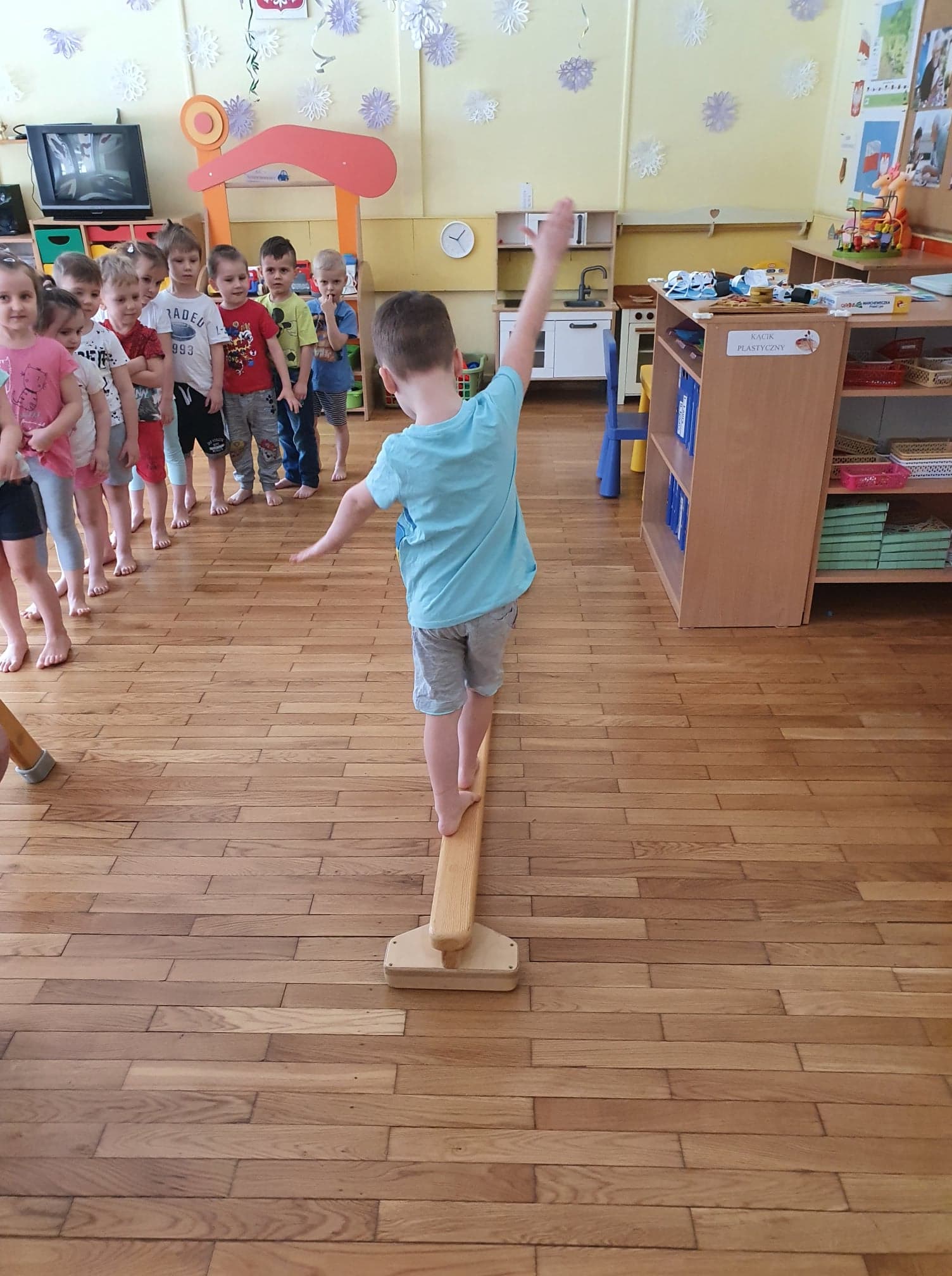 Ćwiczenia gimnastyczne pozwalają wspomagać rozwój fizyczny i korygować zaistniałe wady. Dzieci chętnie uczestniczą w zajęciach. Wzmacniamy mięśnie kręgosłupa ,dbamy o prawidłowy rozwój stóp.