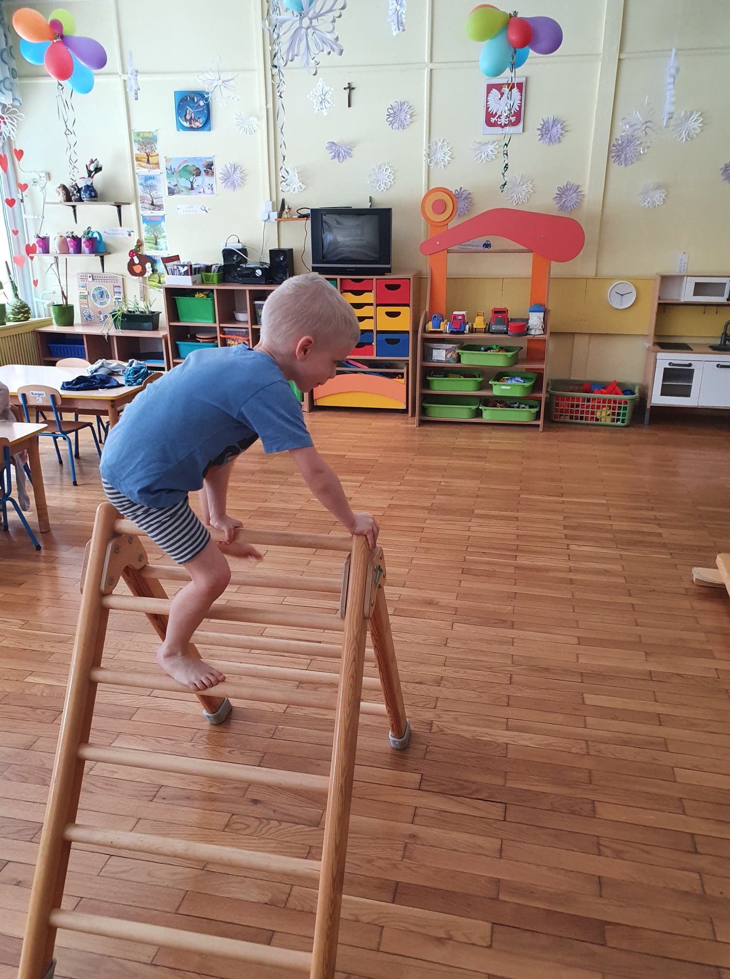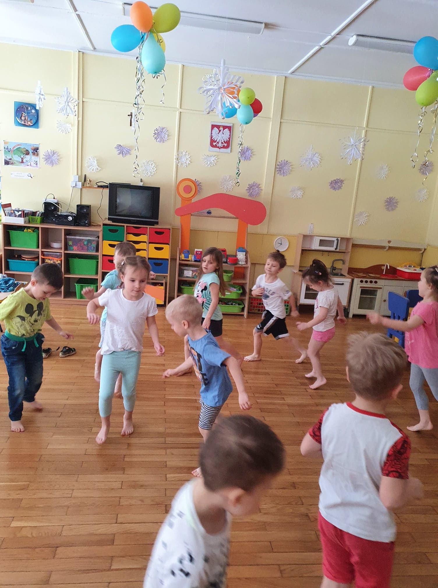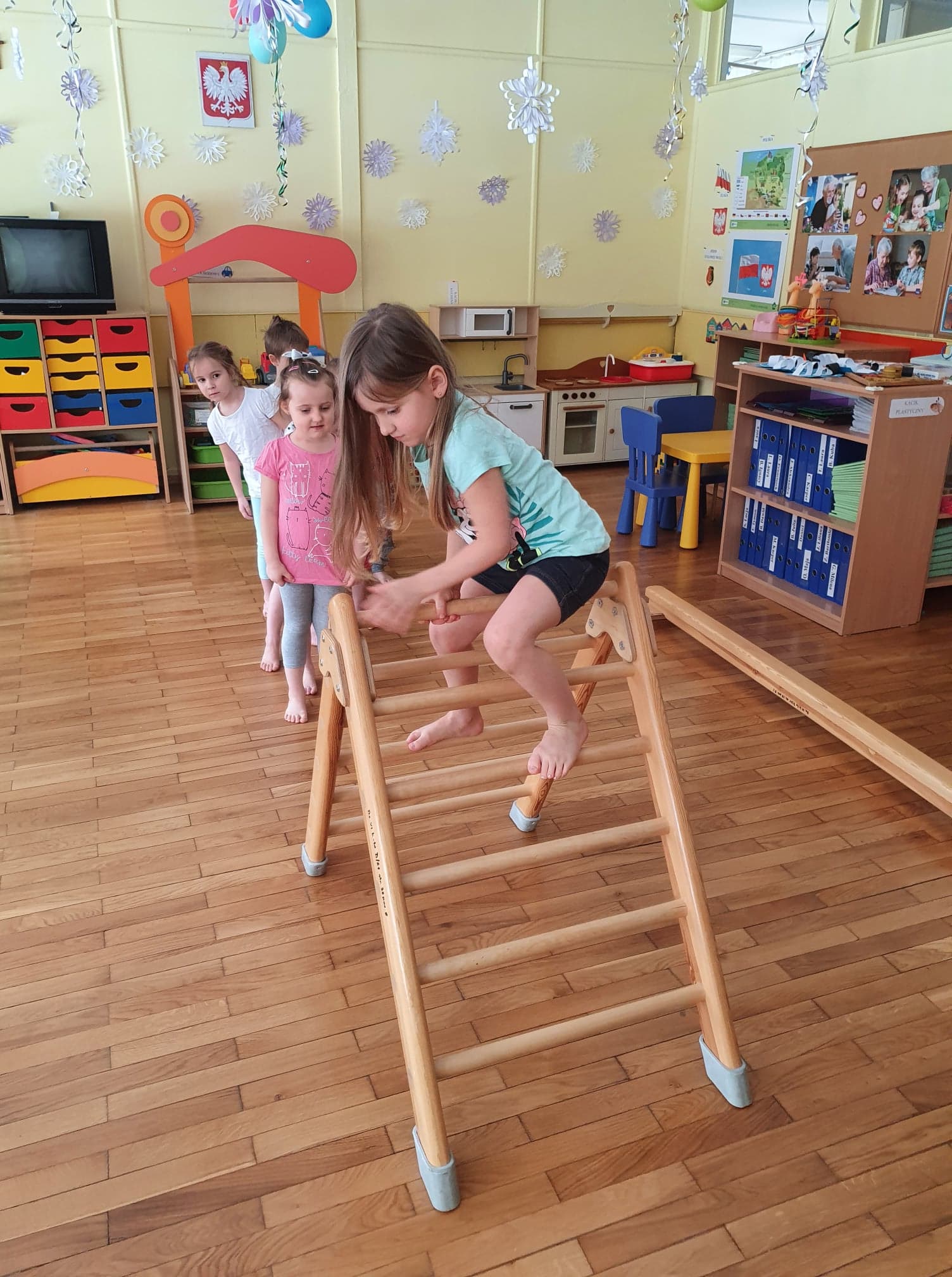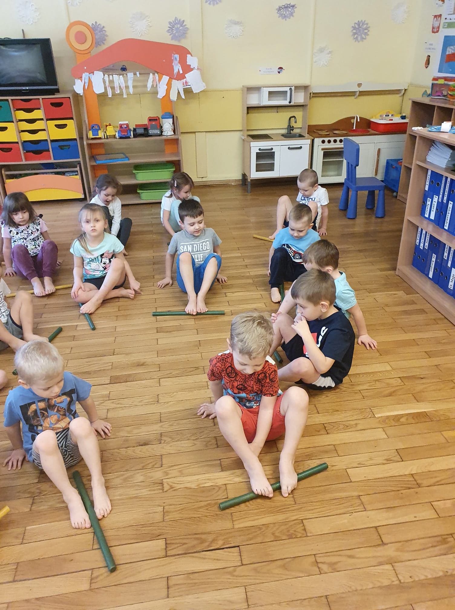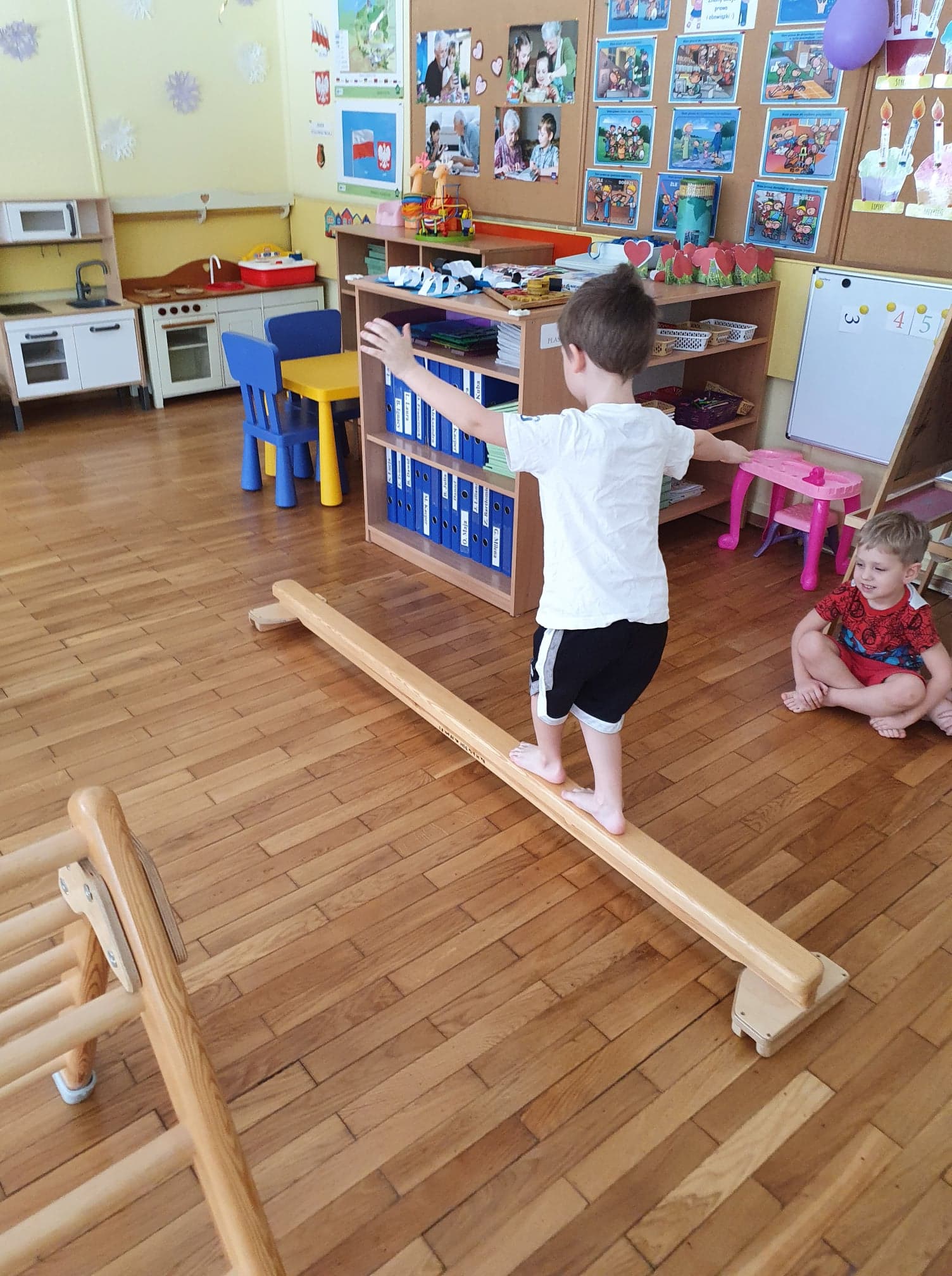 Ćwiczenia gimnastyczne pozwalają wspomagać rozwój fizyczny i korygować zaistniałe wady. Dzieci chętnie uczestniczą w zajęciach. Wzmacniamy mięśnie kręgosłupa ,dbamy o prawidłowy rozwój stóp.