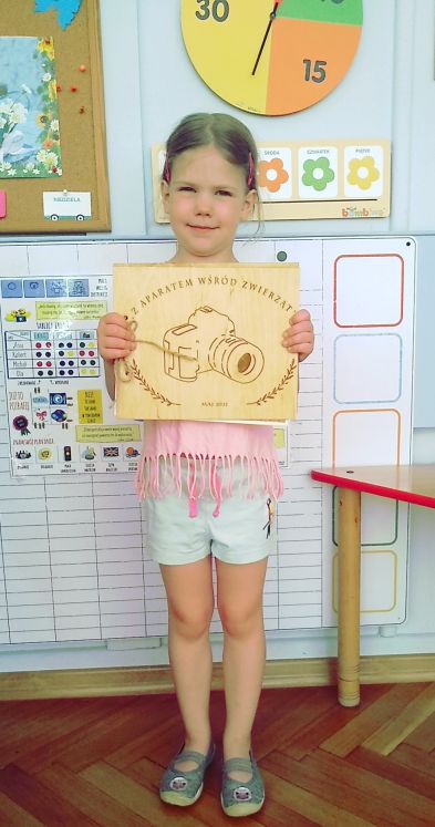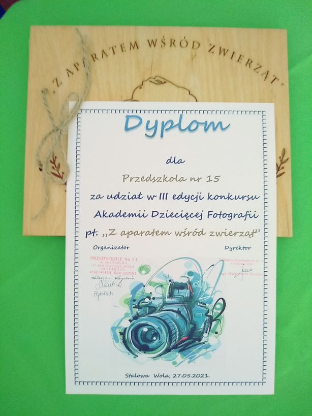 Laura z grupy „Motylki" wzięła udział w konkursie fotograficznym zatytułowanym „Z aparatem wśród zwierząt" zorganizowanym przez Przedszkole nr 11 w Stalowej Woli.Tematem przewodnim tegorocznego konkursu były zwierzęta. Laura otrzymała dyplom, nagrody, zaś nasze przedszkole otrzymało pięknie wydany album ze zdjęciami wszystkich uczestników konkursu oraz dyplom.