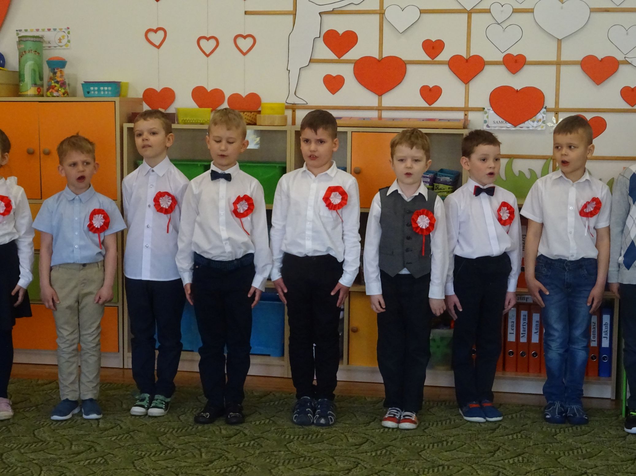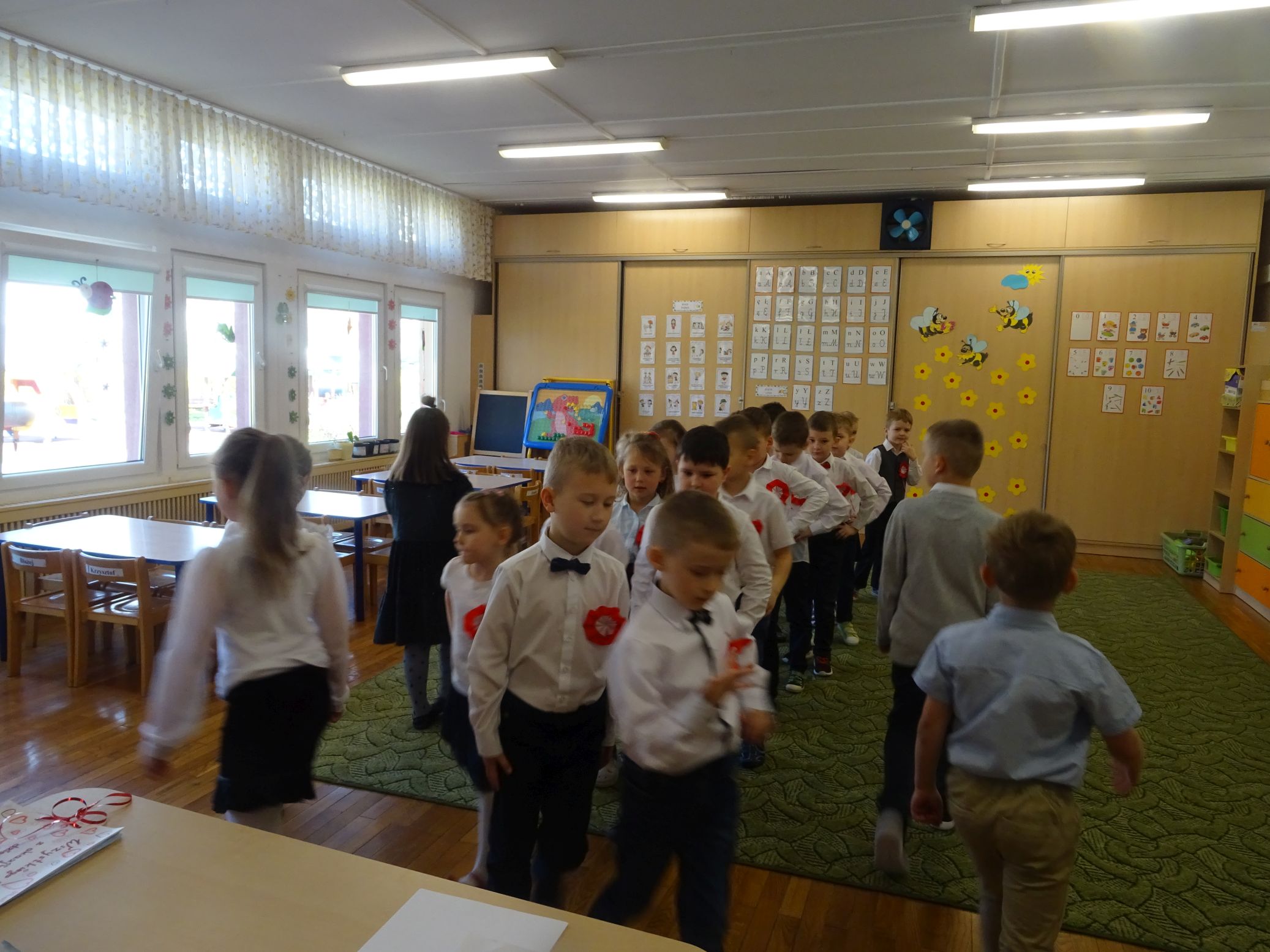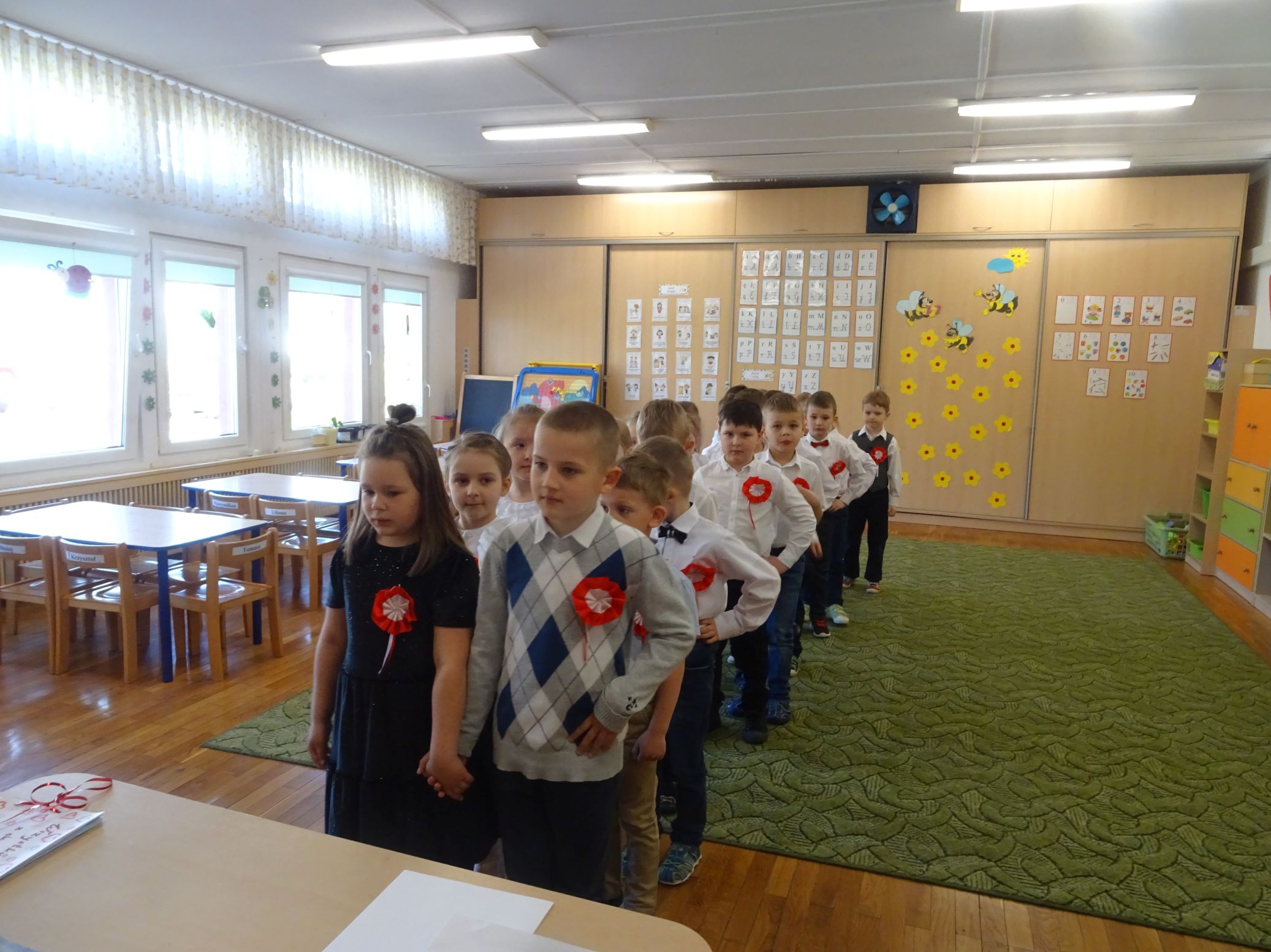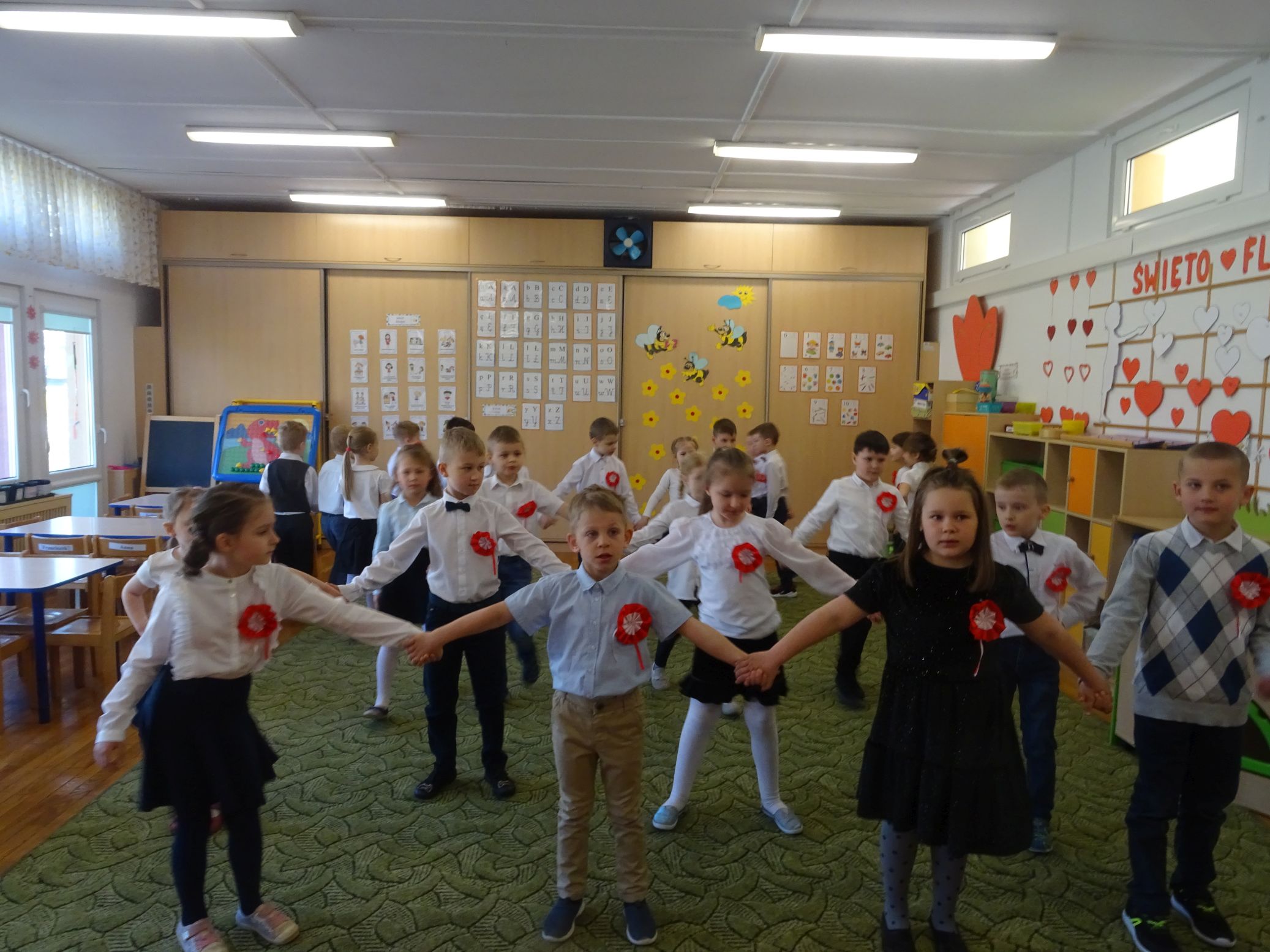 30.04.2020 r. w naszym przedszkolu uroczyście świętowaliśmy obchody Dnia Flagi Rzeczypospolitej Polskiej. Celem uroczystości było rozbudzanie w przedszkolakach zainteresowania Ojczyzną i kształtowanie poczucia dumy z przynależności narodowej. Przedszkolaki z grupy „Zajączki“ ubrane w odświętne stroje wspólnie zaśpiewały hymn narodowy. Następnie zatańczyły poloneza i odśpiewały piosenkę o symbolach narodowych.