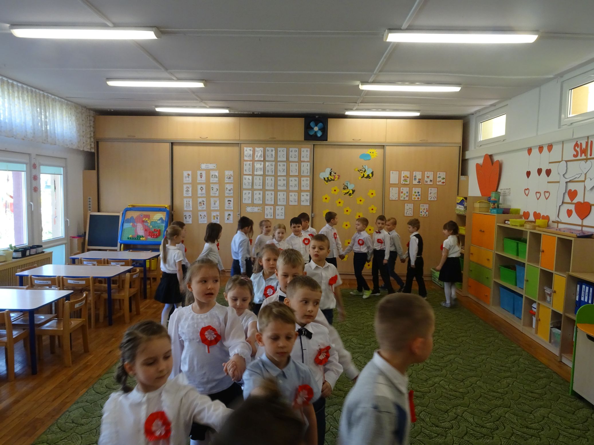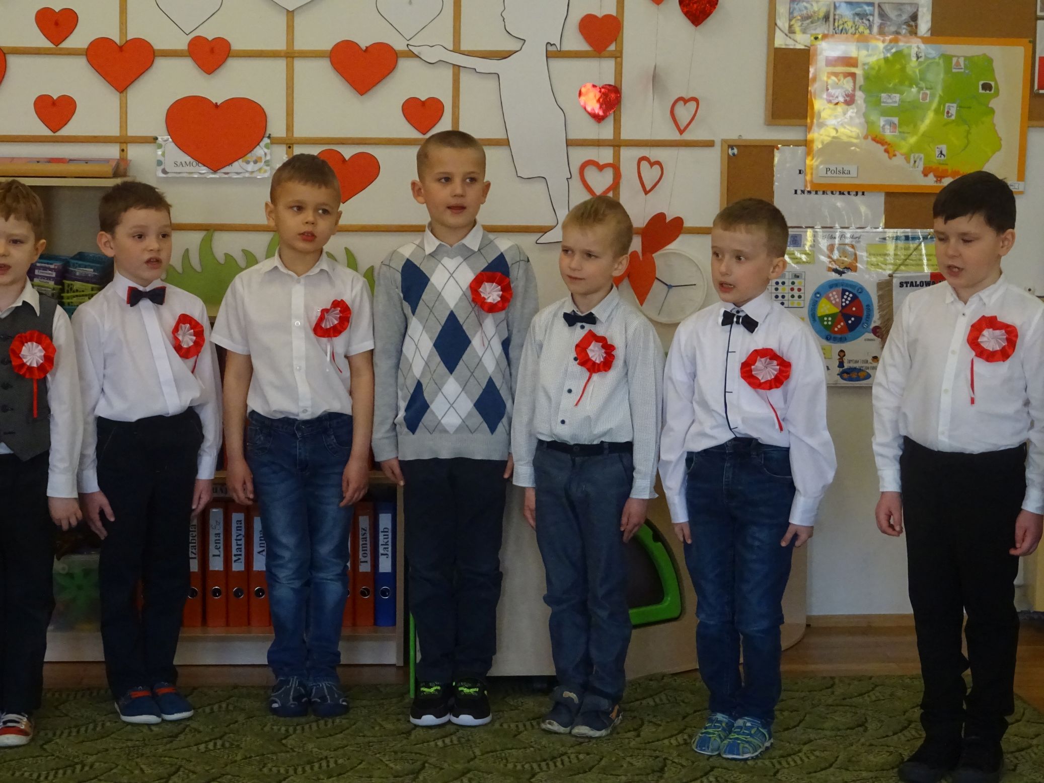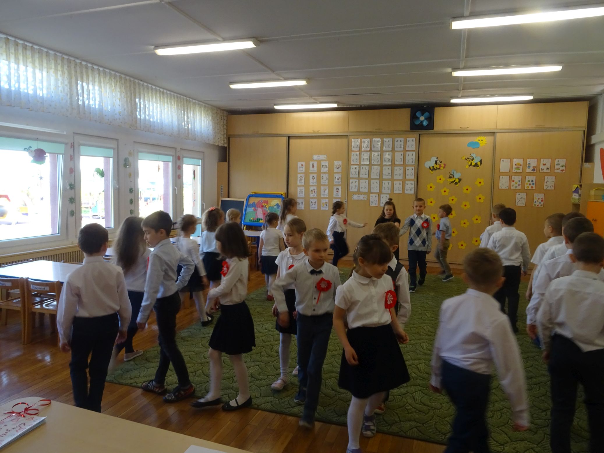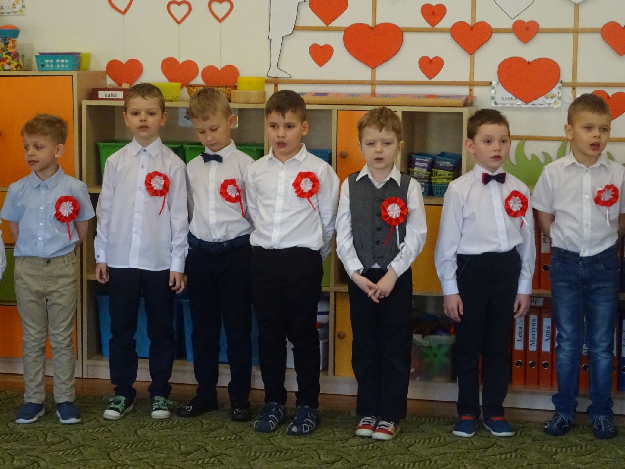30.04.2020 r. w naszym przedszkolu uroczyście świętowaliśmy obchody Dnia Flagi Rzeczypospolitej Polskiej. Celem uroczystości było rozbudzanie w przedszkolakach zainteresowania Ojczyzną i kształtowanie poczucia dumy z przynależności narodowej. Przedszkolaki z grupy „Zajączki“ ubrane w odświętne stroje wspólnie zaśpiewały hymn narodowy. Następnie zatańczyły poloneza i odśpiewały piosenkę o symbolach narodowych.