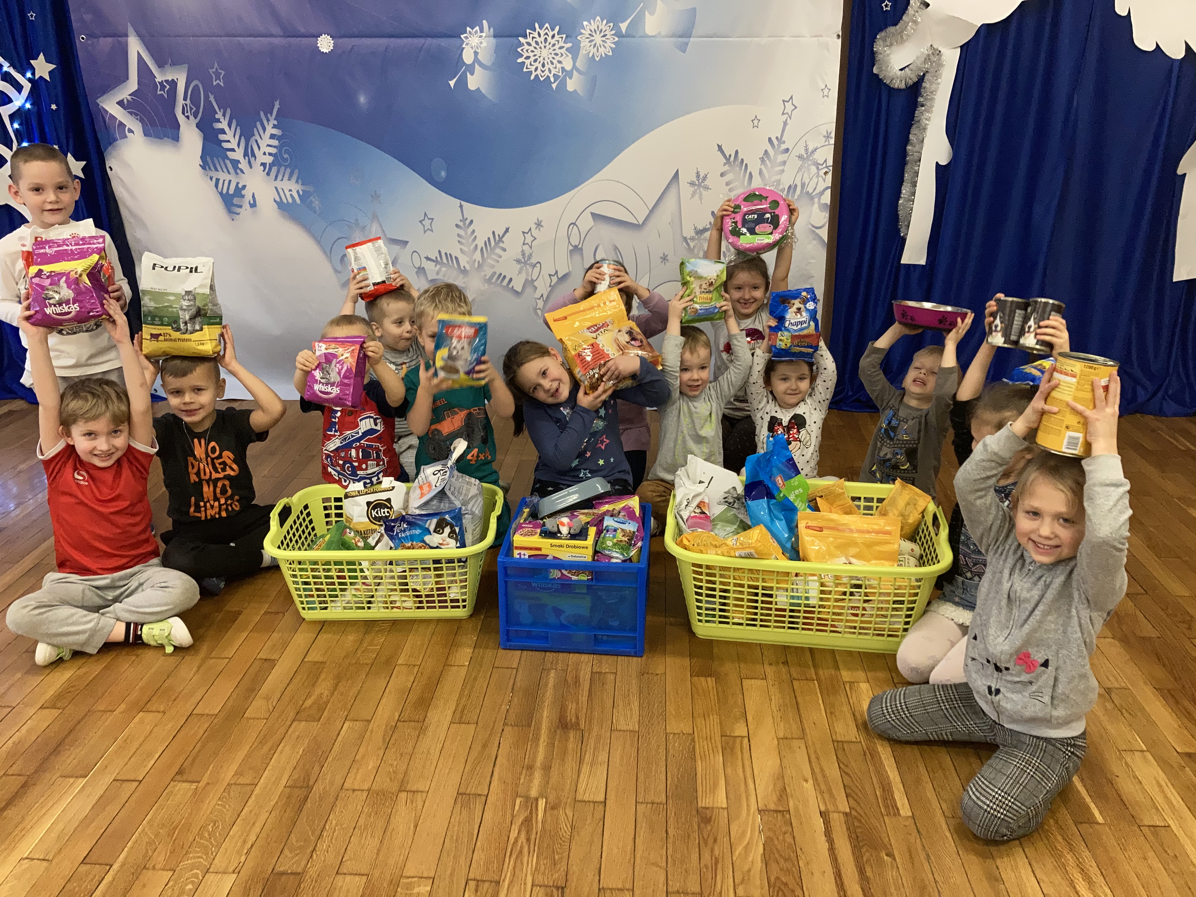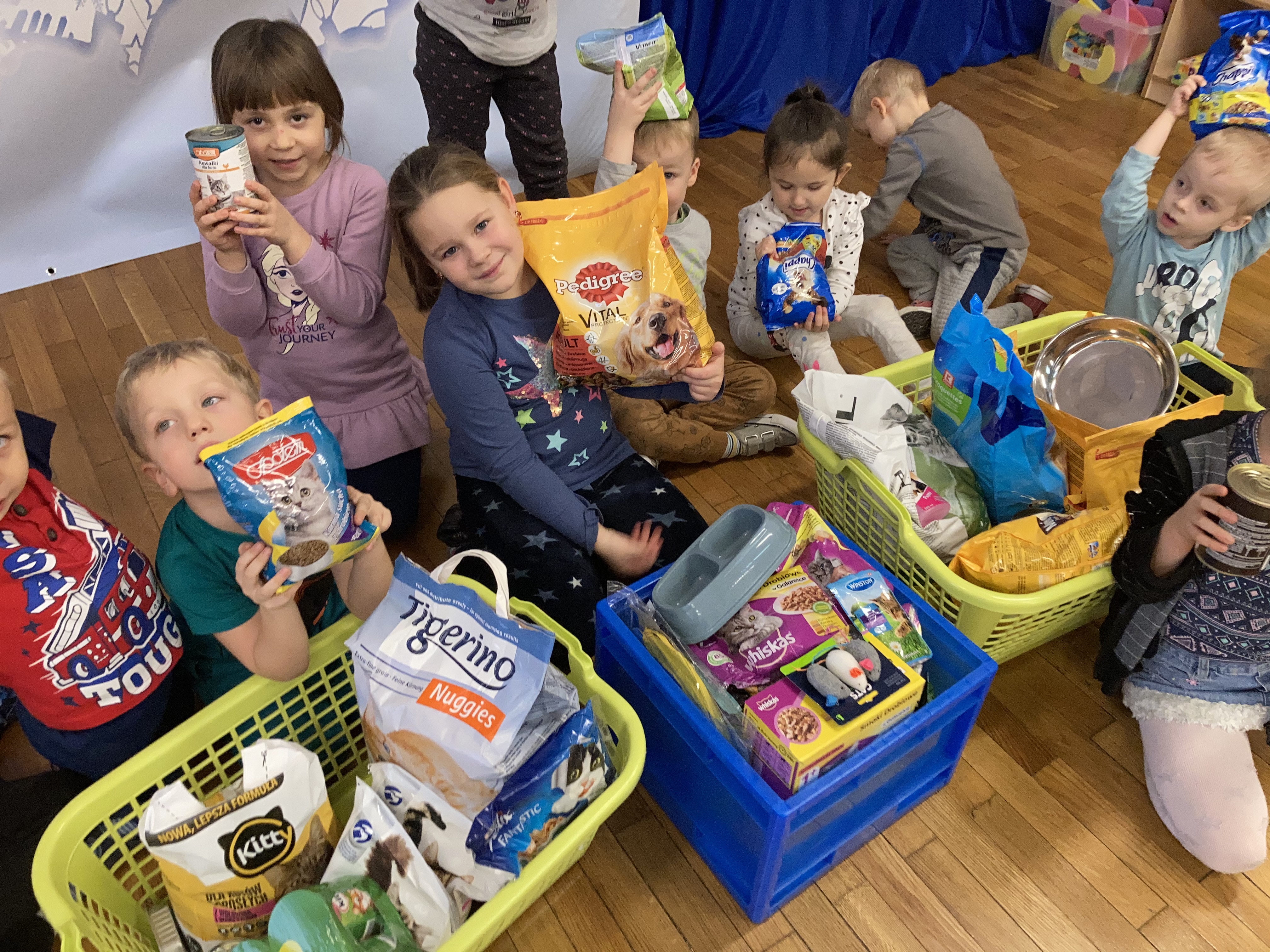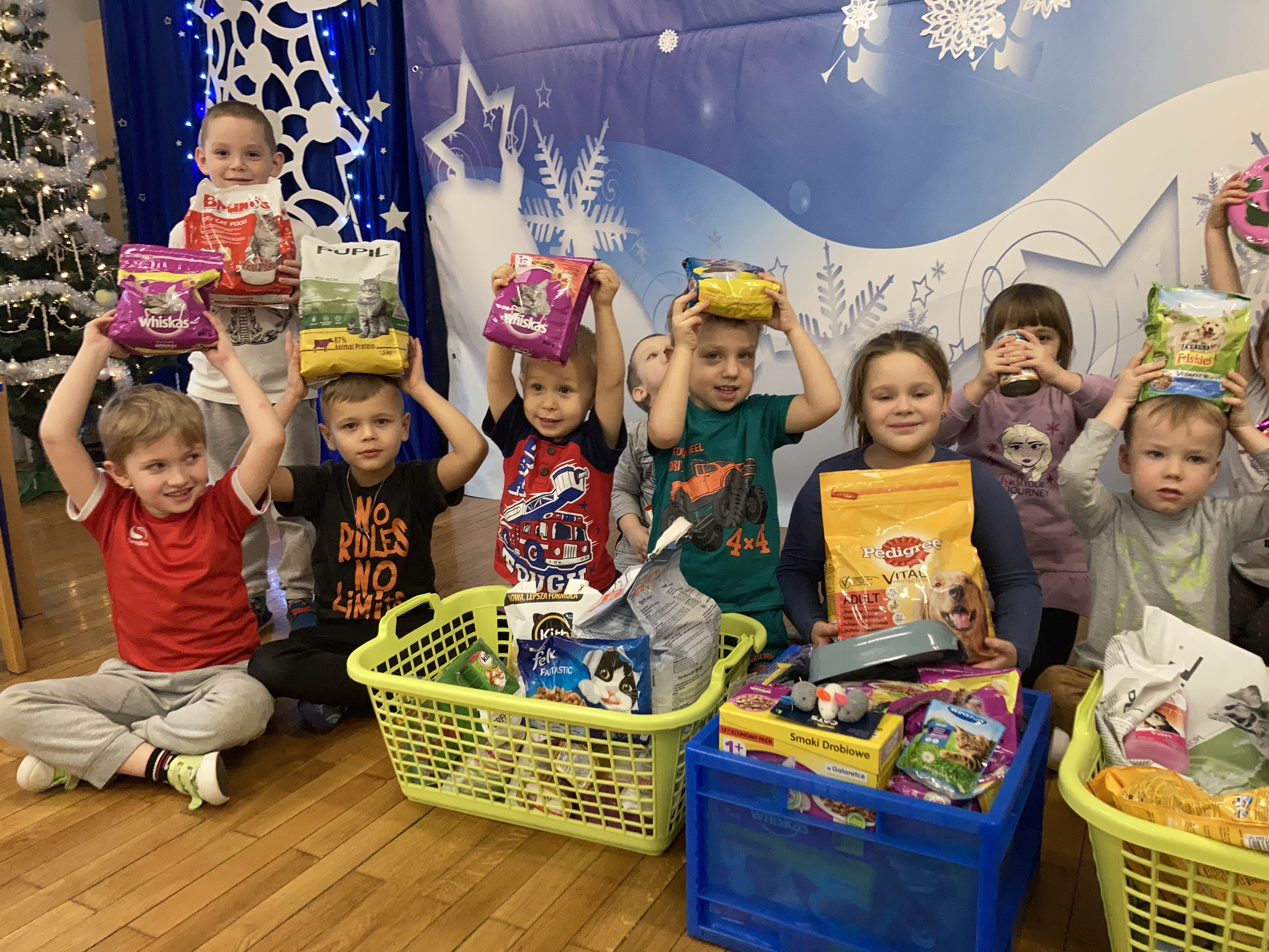 W grudniu nasze przedszkole włączyło się do udziału w akcji „Pomóżmy zwierzętom przetrwać zimę“. Przez cały miesiąc przed naszym przedszkolem wystawione były kosze, do których zbierano karmę i akcesoria dla kotów z Fundacji „Kocia Wyspa“ oraz piesków z przytuliska „Psia przystań“. W Wigilię karma zebrana w przedszkolu została zawieziona do powyższych placówek. Dziękujemy serdecznie dzieciom i rodzicom za włączenie się do zbiórki karmy!