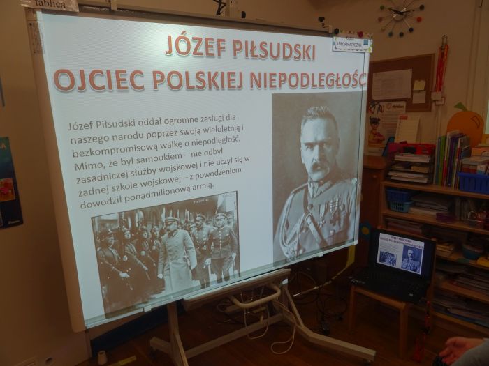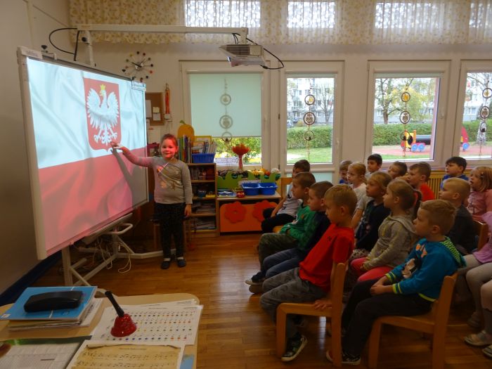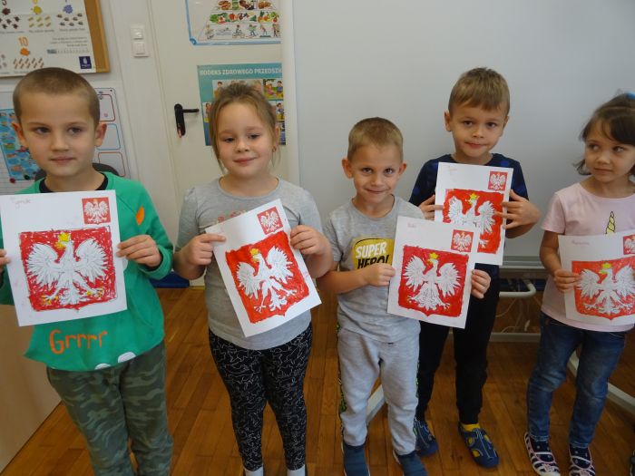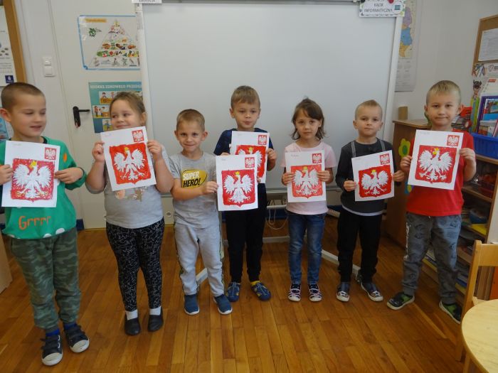 Również w tym roku szkolnym nasze przedszkole włączyło się do akcji „Szkoła Pamięta“. Dzieci z grupy „Zajączki“ wzięły udział w zajęciach, których celem było upamiętnienie rocznicy odzyskania niepodległości – ważnego wydarzenia historycznego na kartach historii Polski. Dzieci oglądnęły prezentację multimedialną, która była poświęcona rocznicy odzyskania przez Polskę niepodległości. Poznały również sylwetkę Józefa Piłsudskiego – ojca polskiej niepodległości. Przedszkolaki na dzwonkach diatonicznych odegrały Hymn Polski. W tym dniu malowaliśmy także godło Polski. Nasze przedszkole z przyjemnością włącza się udział w tego rodzaju projektach, gdyż kształcenie postaw patriotycznych powinno zaczynać się już od najmłodszych lat, a pamięć o bohaterach naszej wolności powinna być przekazywana z pokolenia na pokolenie.