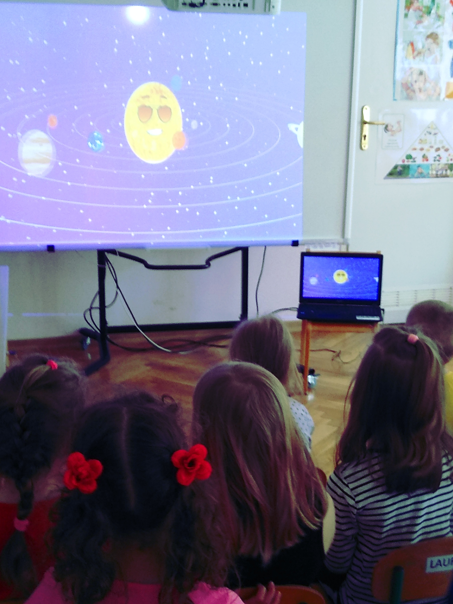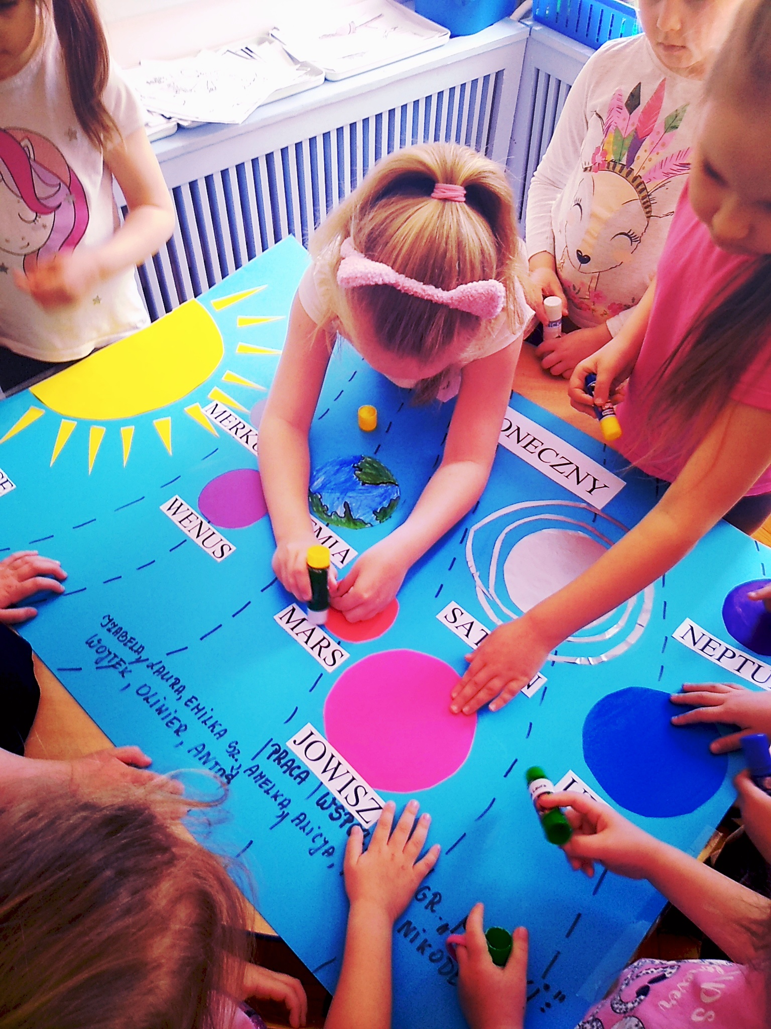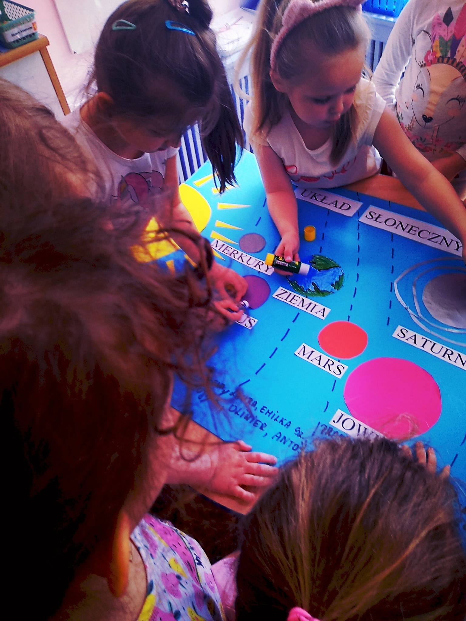 W ramach lekcji o kosmosie " Motylki" dowiedziały się jak wyglądają poszczególne planety , jaką mają masę i powierzchnię, dowiedziały się ponadto kim był pierwszy ,,Polak w kosmosie i wielu innych kosmicznych ciekawostek. „Motylki" nauczyły się piosenki pt. "W układzie Słonecznym"", obejrzały film o kosmosie oraz stworzyły własny Układ Słoneczny ".