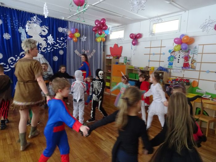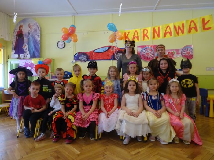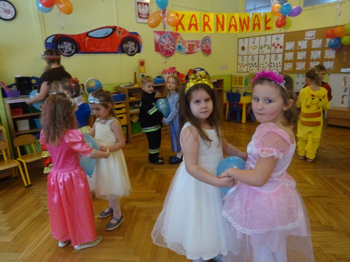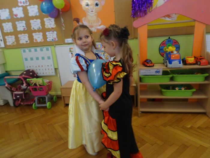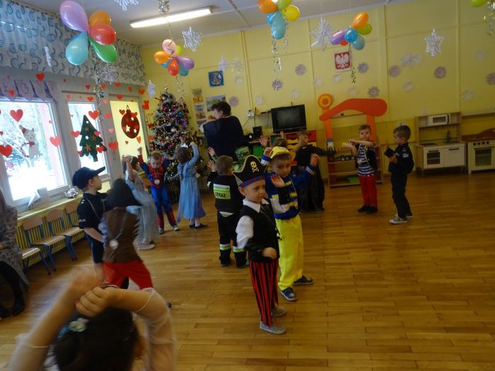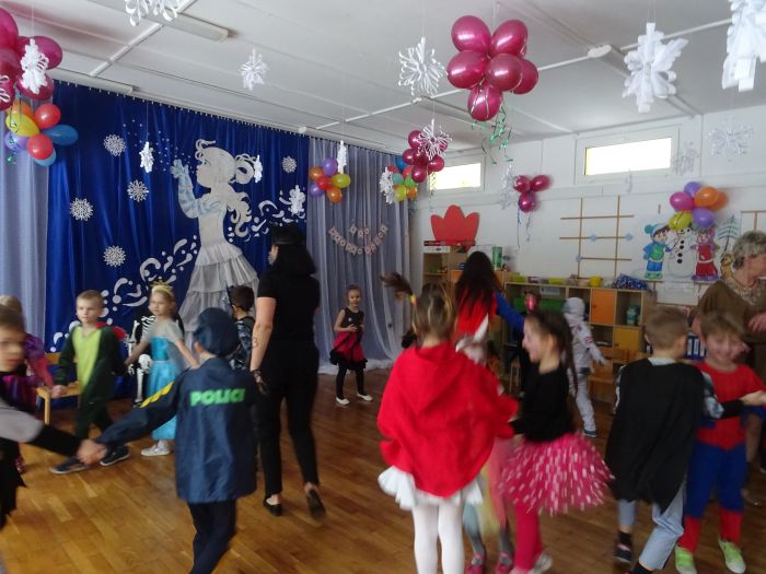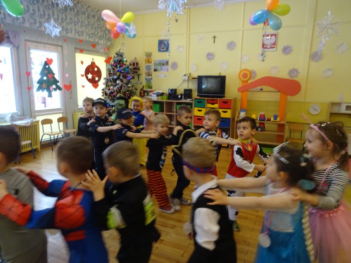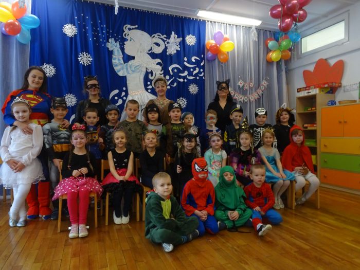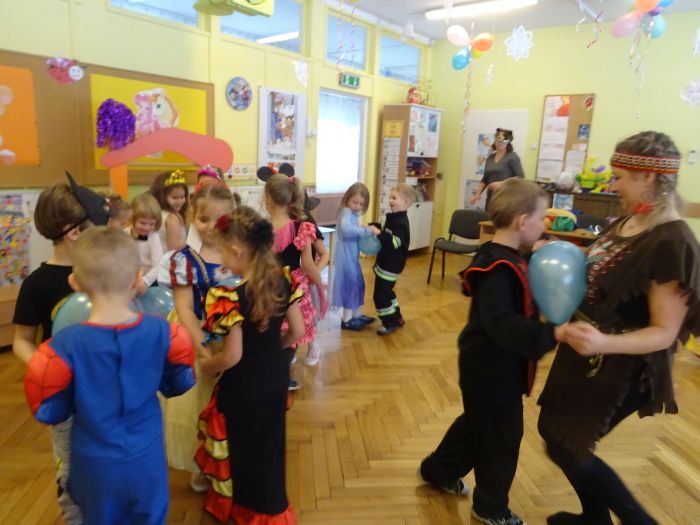 W piątek 29 stycznia w naszym przedszkolu już od rana było bardzo wesoło, a wszystko to za sprawą atmosfery związanej z Zabawą Karnawałową. Sale każdej z grup wyglądały bajecznie i kolorowo, przystrojone serpentynami i balonami. Przepięknie przebrane dzieci z dumą prezentowały wymyślne stroje. Niezliczone księżniczki, czarownice, policjanci, wróżki, biedronki, motylki, kotki, piraci, a także inne postacie z kreskówek zagościły na kilka godzin do naszego przedszkola. W tym dniu nauczycielki poszczególnych grup przygotowały dla dzieci niezliczone atrakcje. Były tańce, konkursy, pokaz mody karnawałowej, malowanie twarzy i modelowanie balonów. Wszyscy świetnie się bawili!